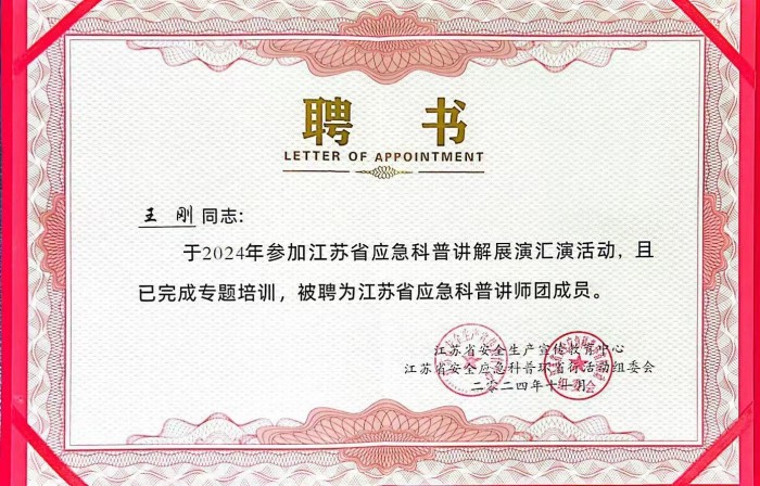 江蘇省應急科普講解展演匯演活動(dòng)由江蘇省安全生產(chǎn)宣傳教育中心與江蘇省安全應急科普環(huán)省活動(dòng)組委會(huì )聯(lián)合舉辦,此次活動(dòng)為期兩天,涵蓋應急科普講解集訓及展演匯演兩大重要環(huán)節。在集訓期間,王剛全身心投入,深入學(xué)習應急科普知識,不斷磨礪講解技巧。他與來(lái)自全省各地的優(yōu)秀學(xué)員交流互動(dòng),汲取多元經(jīng)驗,實(shí)現自我能力的快速提升。