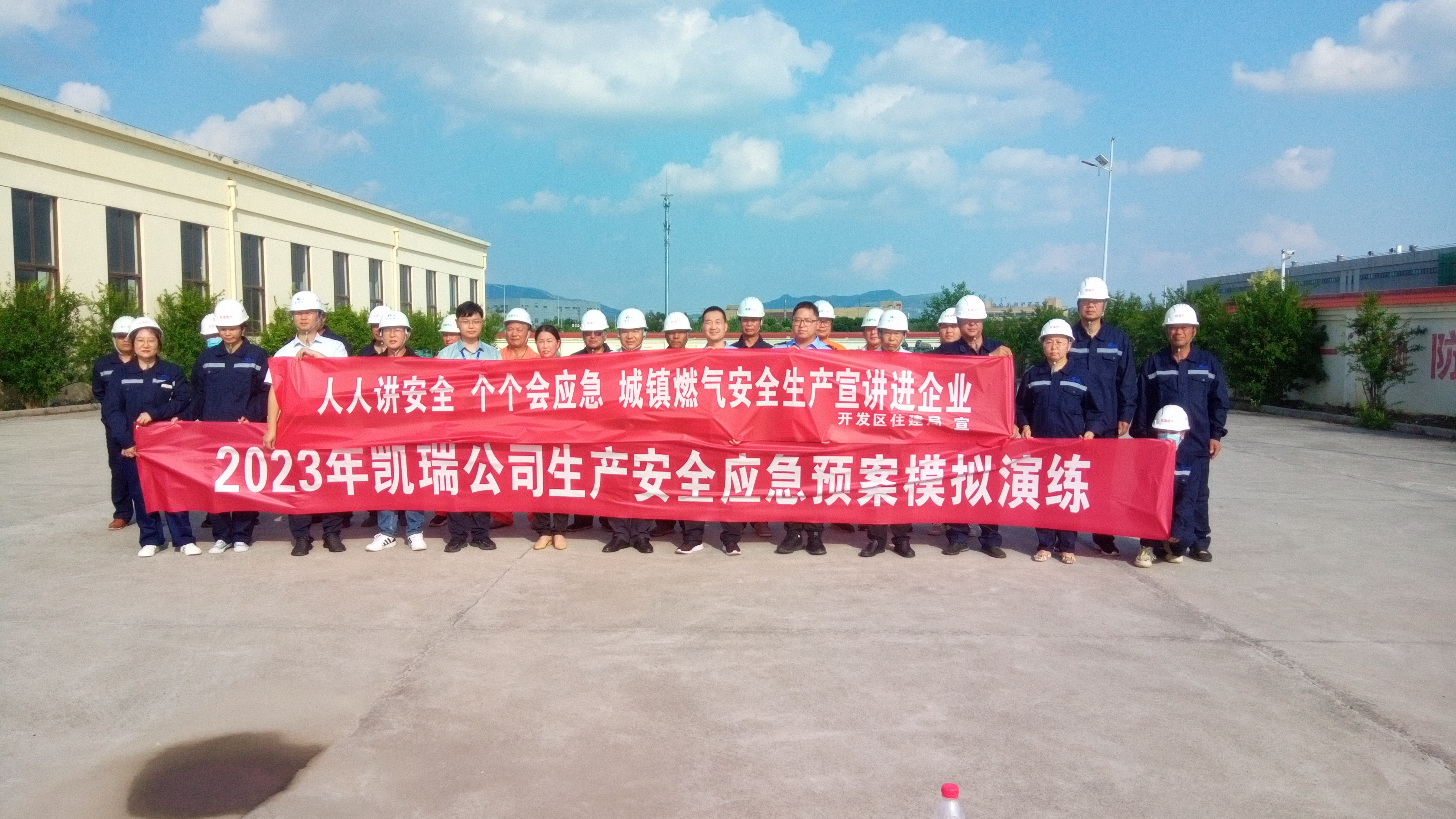 隨著(zhù)口令發(fā)出,演練正式開(kāi)始:現場(chǎng)模擬液化石油氣氣瓶在裝車(chē)過(guò)程中,押運人員發(fā)現已裝上配送車(chē)輛的氣瓶角閥部位有漏氣現象。經(jīng)初步關(guān)閉操作,無(wú)法起到關(guān)閉效果,大量液化石油氣泄露后,引發(fā)火災事故。押運人員發(fā)現事故后迅速上報,應急指揮部接報告后立即啟動(dòng)應急響應,應急小組分工實(shí)施搶險救援,迅速開(kāi)展人群疏散管控、堵漏、滅火、環(huán)境監測等工作,經(jīng)過(guò)半小時(shí)的救援,成功地排除了險情?,F場(chǎng)出動(dòng)搶險車(chē)1臺,液化石油氣瓶運輸車(chē)1臺,凱瑞公司搶險處置人員20余名,共成立演練總指揮、現場(chǎng)指揮、物資供應、搶修救援、現場(chǎng)處置、醫療救護、專(zhuān)家點(diǎn)評7個(gè)小組。演練過(guò)程緊張有序,參演人員反應迅速規范,具有很強的針對性與指導性。