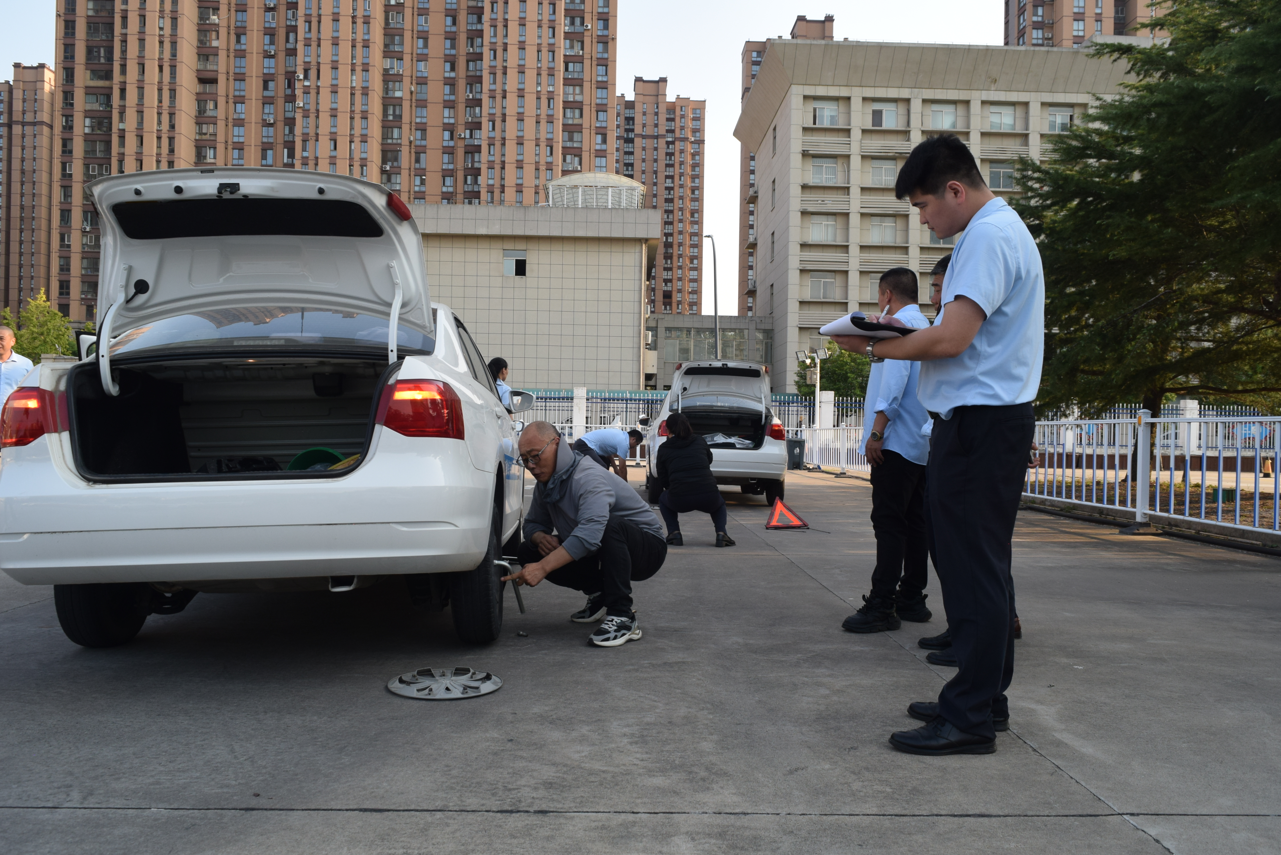 比賽中,選手們熟練地取出千斤頂、套筒等車(chē)輛輪胎拆裝工具進(jìn)行輪胎更換作業(yè),拉起手剎、打開(kāi)危險報警閃光燈、擺放三角警示牌、卸裝輪胎等一系列操作一氣呵成。比賽現場(chǎng)看似平靜,但其實(shí)大家都在暗暗較勁兒,氣氛異常激烈。經(jīng)過(guò)兩個(gè)小時(shí)緊張又激烈的角逐,最終3名教練員脫穎而出,取得了前三名的好成績(jì)。