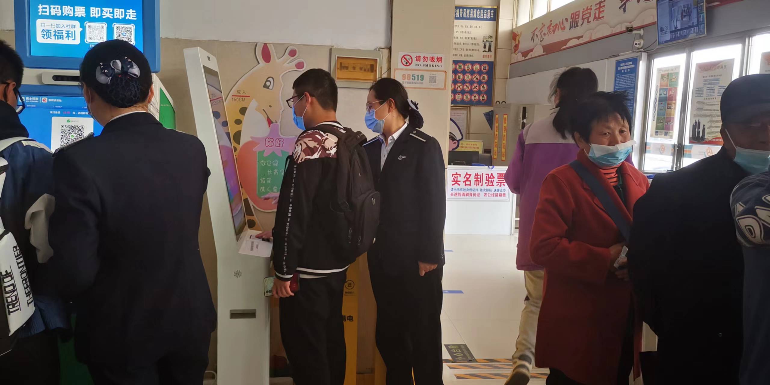 “大娘您好,您把手機給我,我來(lái)教您出示健康碼?!薄斑@位姑娘,車(chē)票可以從手機上操作購買(mǎi),你回來(lái)的時(shí)候乘車(chē)就方便了?!薄笆迨?、阿姨,離發(fā)車(chē)還有20多分鐘,先坐在這里等一會(huì )兒吧?!痹谶B汽蘇欣快客站內,值班站長(cháng)蘇信正在忙碌地招呼旅客,幫助他們解決遇到的各種問(wèn)題。