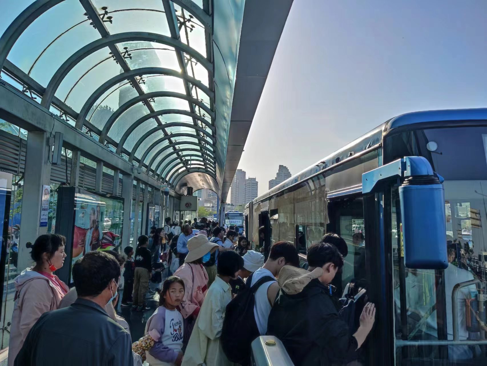 五一期間,公交集團積極響應旺季交通疏解文件要求,提前謀劃,靜心部署,通過(guò)制作應急預案,現場(chǎng)多次推演,結合各點(diǎn)位人員全天候現場(chǎng)調度和巡查、后臺智能化監控、加密班次、駕駛員超負荷在崗流水線(xiàn)發(fā)車(chē)等保障措施避免了花果山景區大量人流聚集和平安接駁。期間累計投放運力達163臺次,發(fā)送總班次達2465班,運送客流達14.83萬(wàn)人次,組織70余名志愿者現場(chǎng)為四面八方的游客提供咨詢(xún)、引導和轉接駁引導服務(wù)。接駁期間,幫助5名安徽游客44分鐘內高效準點(diǎn)送至高鐵站安全到家并收到感謝信;幫助外地游客找回丟失的手機收到12345市政府服務(wù)熱線(xiàn)的表?yè)P單;幫助南京游客找到丟失的筆記本電腦;扶老攜幼的事例更是數不勝數。