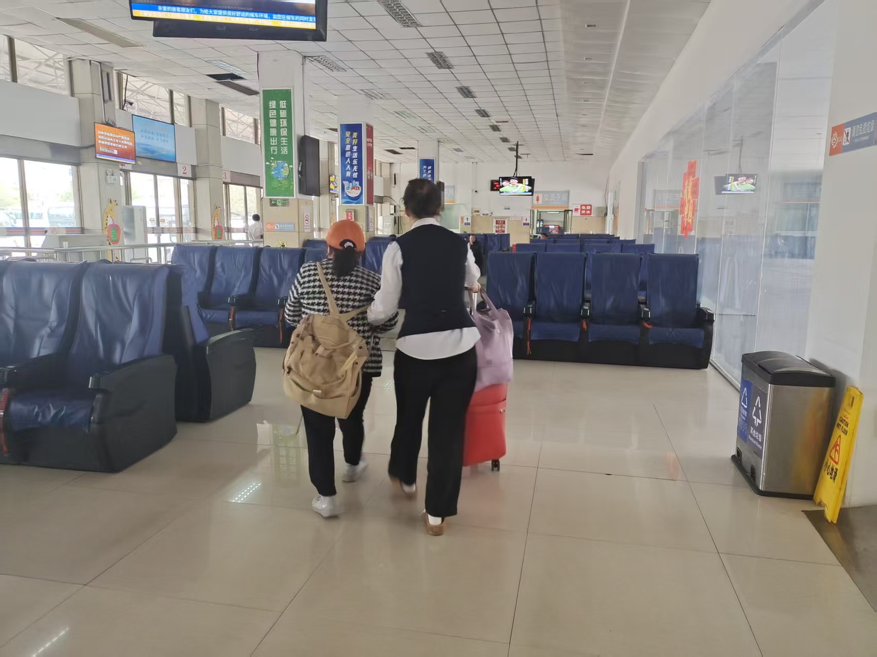 “您好,是要坐車(chē)嗎?”駱青立刻快步上前,聲音特意放輕,左手輕輕扶上旅客的胳膊肘,右手順勢接過(guò)她手里沉甸甸的布包。原來(lái)這位旅客要去沭陽(yáng),獨自出門(mén)來(lái)蘇欣快客站,剛進(jìn)門(mén)就慌了神?!澳鷦e著(zhù)急,我陪您辦手續”駱青一邊安撫,一邊扶著(zhù)她往購票窗口走,每過(guò)一個(gè)拐角、上一級小臺階,都輕聲提醒:“前面慢一點(diǎn),有個(gè)小坡”“窗口到了,我幫你遞身份證”。選好了去沭陽(yáng)的班次,駱青幫著(zhù)核對信息,把車(chē)票和身份證小心翼翼塞進(jìn)旅客手心:“您拿好,我扶著(zhù)你去檢票、乘車(chē)?!苯又?zhù),駱青拎著(zhù)布包、行李箱帶旅客過(guò)安檢、檢票。上車(chē)時(shí),駱青踩著(zhù)臺階先幫旅客把行李放好,再扶著(zhù)她上車(chē)坐穩,不忘叮囑駕駛員:“麻煩您路上多照看一下?!?/span>