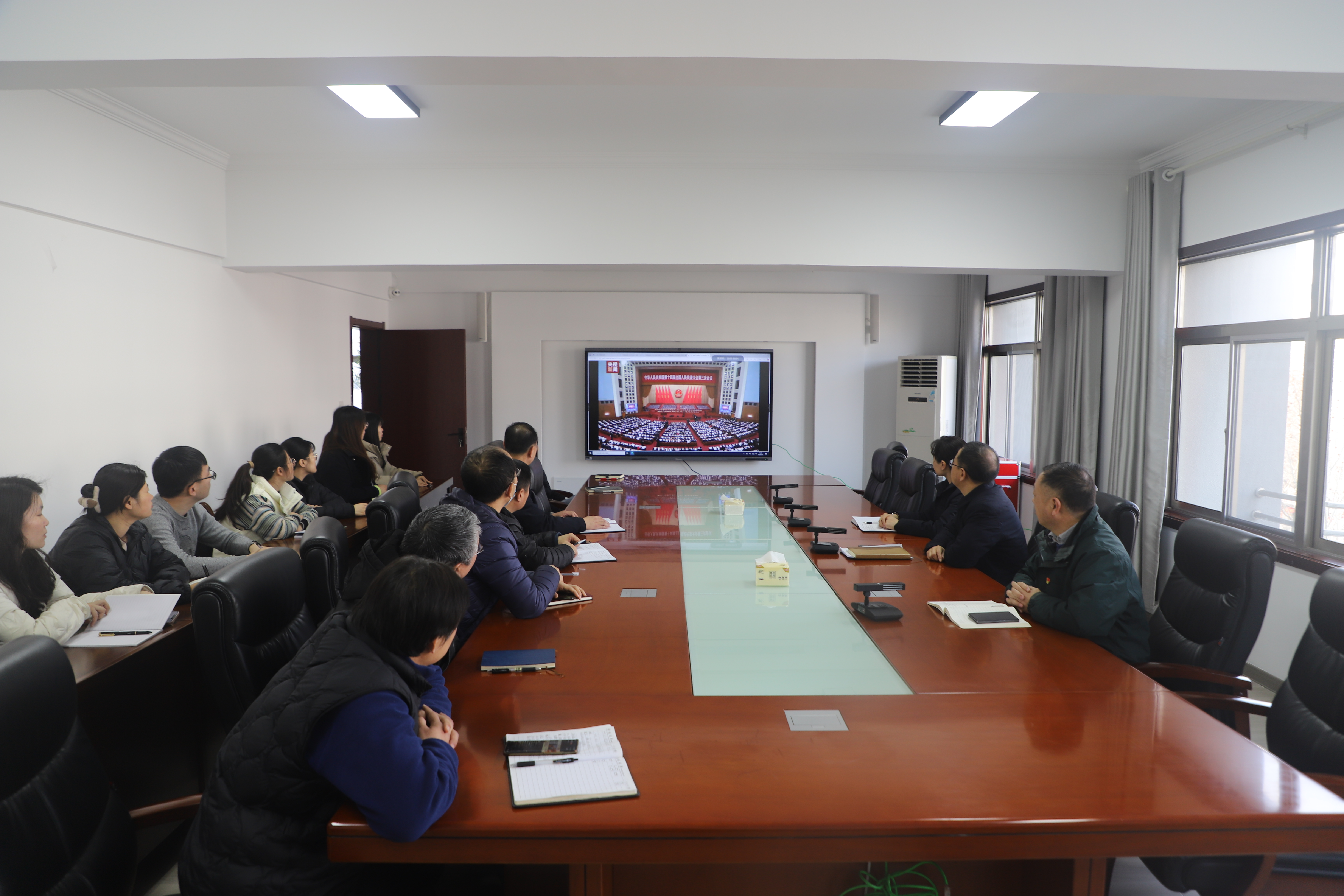 2025年3月5日上午9時(shí),十四屆全國人大三次會(huì )議在北京人民大會(huì )堂隆重開(kāi)幕。豐達公司機關(guān)組織全體干部職工通過(guò)視頻直播方式集中收看會(huì )議盛況,認真聆聽(tīng)國務(wù)院總理所作的政府工作報告,深刻領(lǐng)會(huì )全國兩會(huì )精神。