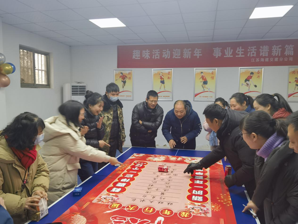 龍行龘龘,欣欣家國。伴隨著(zhù)冬日里最溫暖的陽(yáng)光懷揣著(zhù)2023年滿(mǎn)滿(mǎn)的收獲,江蘇海建交建分公司工會(huì )組織了一場(chǎng)2024年“迎新春”職工趣味活動(dòng)。本次活動(dòng)共設置了三個(gè)項目,包括摜蛋、滾滾樂(lè )、以及球拍端乒乓球。