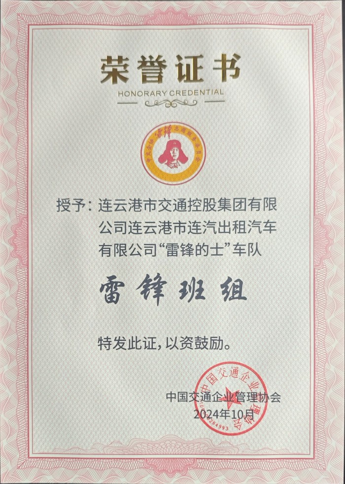 11月6日,從中國交通企業(yè)管理協(xié)會(huì )傳來(lái)喜訊,連云港市交通控股集團汽服公司出租汽車(chē)事業(yè)部“雷鋒的士”車(chē)隊喜獲“雷鋒班組”稱(chēng)號,這一殊榮不僅是對“雷鋒的士”車(chē)隊長(cháng)期以來(lái)堅持優(yōu)質(zhì)服務(wù)和無(wú)私奉獻精神的肯定,也是對整個(gè)出租汽車(chē)行業(yè)樹(shù)立新風(fēng)尚、展現新形象的有力鼓舞。