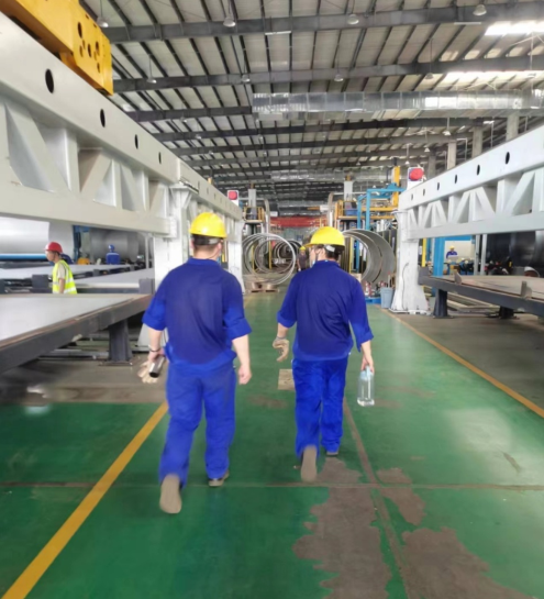 躲過(guò)烈日炙烤,室內作業(yè)也并不輕松。嚴格的勞動(dòng)防護用品穿戴要求以及大功率壓機的長(cháng)時(shí)間運轉,加上車(chē)間溫度高、濕度大,室內就猶如大蒸籠。鉆到筒體內焊接打磨的工人們,需要在里面工作數個(gè)小時(shí),一滴滴汗水不斷從臉頰、脖子、后背劃過(guò),這樣的“蒸桑拿”式體驗,是車(chē)間工人的家常便飯。