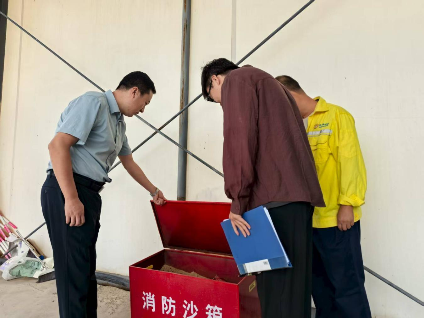 在各場(chǎng)站檢查現場(chǎng),周輝一行首先對消防沙箱進(jìn)行細致核查。檢查小組逐一查看沙箱內消防沙的干燥度與純凈度,確認無(wú)雜物混入影響滅火效果;同時(shí)檢查沙箱箱體是否完好、有無(wú)銹蝕或破損,箱蓋是否能快速開(kāi)啟,周邊是否配備消防鏟等配套工具,且無(wú)遮擋物阻礙應急取用。針對個(gè)別場(chǎng)站消防沙箱周邊存在少量雜物的情況,周輝當場(chǎng)要求工作人員立即清理,并強調“消防設施是安全最后一道屏障,必須時(shí)刻保持完好可用狀態(tài),絕不能有半點(diǎn)松懈”。