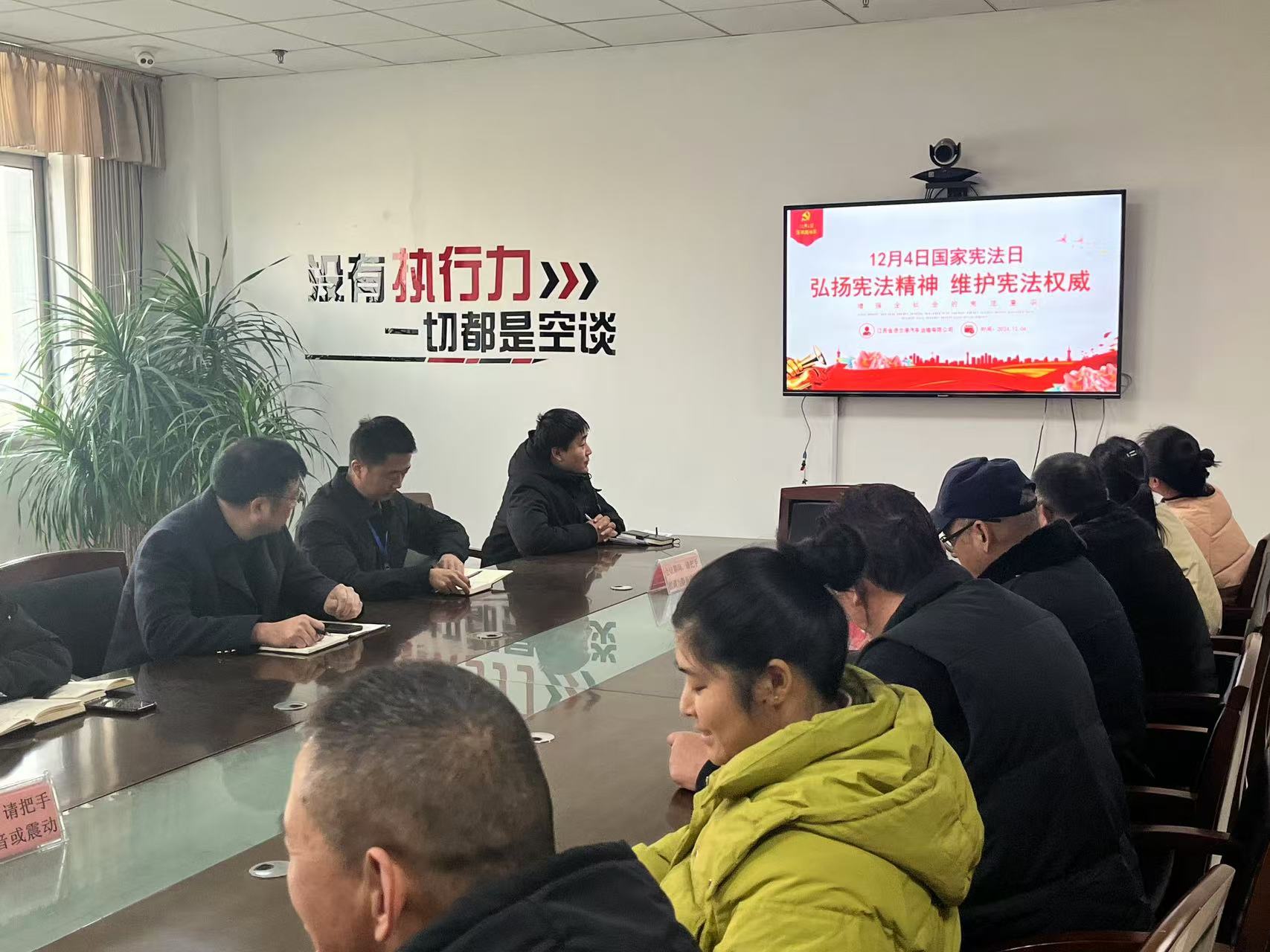 通過(guò)在公司電子屏播放憲法宣傳標語(yǔ)、組織公司職工參加憲法宣傳會(huì )議等形式,展示憲法知識,為職工講解憲法的歷史、意義和價(jià)值等重要內容。同時(shí),利用公司內部微信群,開(kāi)展線(xiàn)上憲法知識學(xué)習活動(dòng),讓職工在業(yè)余時(shí)間自主學(xué)習憲法知識。