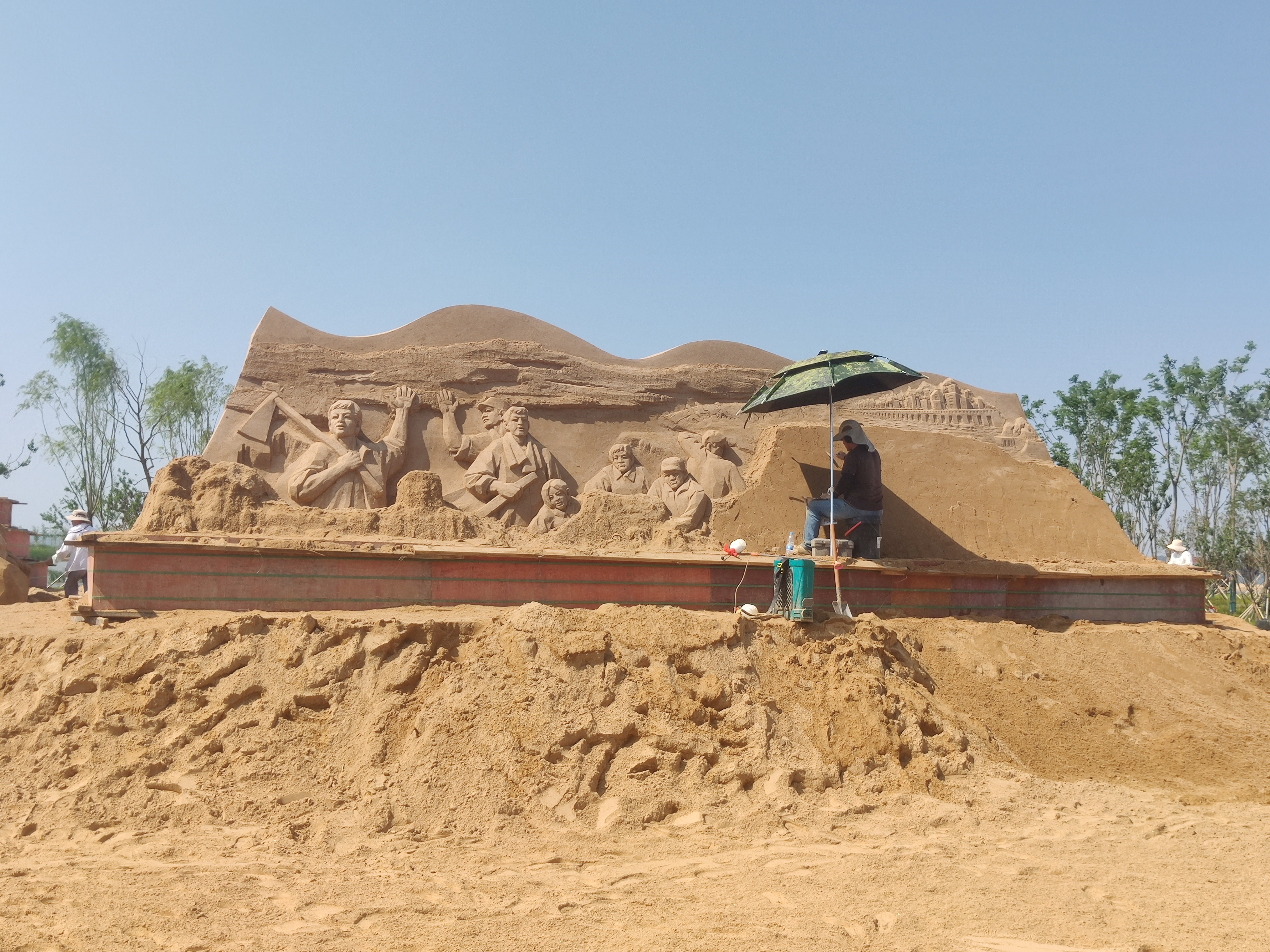 “黃金沙灘”圍繞“沙”的元素設置了“趣味沙世界”主題區,打造七處主題沙雕,占地1100平方米,包括一個(gè)主雕塑和六處分雕塑,主雕塑為13米長(cháng)、5米寬、3.6米高,分雕塑均為4米長(cháng)、4米寬、3米高,七個(gè)雕塑共同構成一個(gè)大型組合沙雕展覽區。大型組合沙雕展覽區的各個(gè)單位沙雕圍繞一個(gè)主題使沙雕作品具有較強的故事性和趣味性,增強作品的文化內涵。同時(shí),在組合沙雕上將設計與主題相協(xié)調的游覽路線(xiàn),使游客可走進(jìn)沙雕,從各個(gè)角度觀(guān)賞,體驗樂(lè )趣,將進(jìn)一步增強沙雕場(chǎng)景的真實(shí)性和藝術(shù)效果。目前各沙雕已頗具雛形,預計6月20日前完成全部沙雕雕刻。