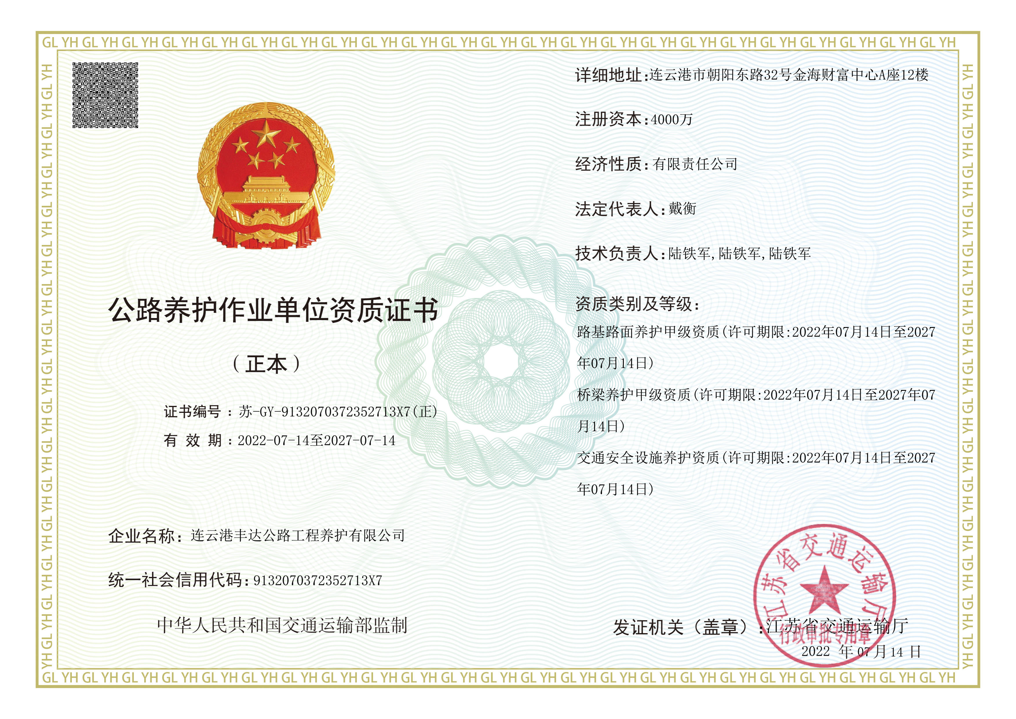 7月14日,豐達公司此次申報的公路養護作業(yè)單位資質(zhì)“路基路面甲級、橋梁甲級、交通安全設施”三個(gè)專(zhuān)業(yè)順利通過(guò)江蘇省交通運輸廳核準,申報成功。