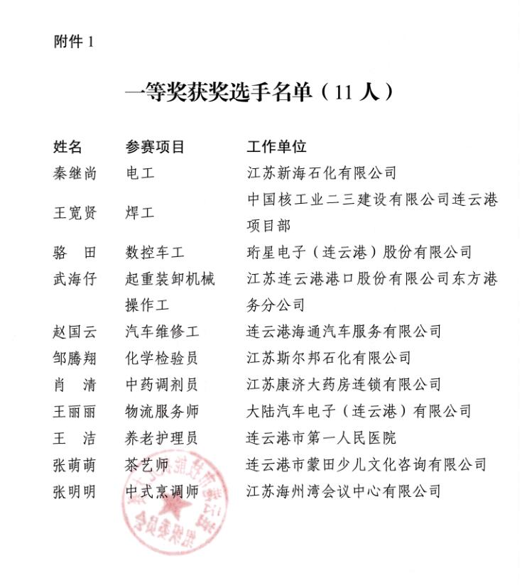大賽成績(jì)的取得,離不開(kāi)競賽選手堅持不懈的拼博精神和精益求精的工匠精神。據悉,對獲得決賽一等獎的趙國云,由市政府授予“連云港技能狀元”榮譽(yù)稱(chēng)號,經(jīng)綜合考察合格后由市總工會(huì )授予“連云港市五一勞動(dòng)獎?wù)隆睒s譽(yù)稱(chēng)號。對獲得三等獎的相帥和張建馳,由市人力資源和社會(huì )保障局授予“連云港市技能標兵”榮譽(yù)稱(chēng)號,市總工會(huì )授予“連云港市五一創(chuàng )新能手”榮譽(yù)稱(chēng)號。