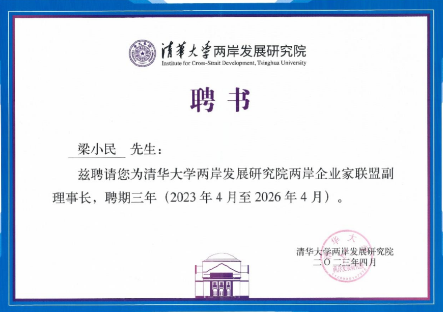 4月17日,港嘉公司總經(jīng)理梁小民受邀參加由清華大學(xué)兩岸發(fā)展研究院在福州舉辦的“共享中國式現代化新機遇——清華大學(xué)兩岸新經(jīng)濟產(chǎn)業(yè)發(fā)展研討會(huì )”。福建省委常委、市委書(shū)記林寶金,中國科學(xué)院院士、清華大學(xué)兩岸發(fā)展研究院院長(cháng)、清華大學(xué)原校長(cháng)顧秉林出席并致辭;清華大學(xué)高等研究院副院長(cháng)李家強,中國科學(xué)院院士、清華大學(xué)高等研究院“楊振寧講座”教授王小云,副市長(cháng)黃建雄等出席。清華大學(xué)兩岸發(fā)展研究院常務(wù)副院長(cháng)王治強主持。會(huì )上港嘉公司總經(jīng)理梁小民同志正式獲聘清華大學(xué)兩岸發(fā)展研究院兩岸企業(yè)家聯(lián)盟副理事長(cháng)。