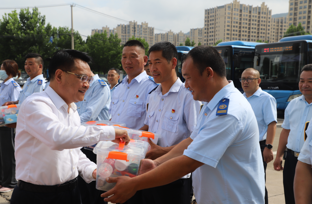 在公交集團新華公交總站,王家全詳細詢(xún)問(wèn)了一線(xiàn)職工的工作、生活等情況,代表市總工會(huì )對不畏炎熱酷暑、堅守營(yíng)運一線(xiàn)的職工們表示親切慰問(wèn)。他說(shuō),公共交通出行是重要的民生工程,市委、市政府都高度重視,公交在保障老百姓出行,保障城市正常運轉等方面做出了積極的貢獻。大家在工作中的辛勤付出,讓廣大市民享受到安全、優(yōu)質(zhì)、舒適、便捷的公共交通服務(wù)。并叮囑廣大職工在堅守崗位的同時(shí),增強自我保護意識,做好防暑降溫工作。希望他們在今后的工作中再接再厲,以?xún)?yōu)質(zhì)文明的服務(wù)、良好的精神面貌為全市人民服務(wù),努力把城市公交打造成展示城市美好形象的窗口,為全市經(jīng)濟社會(huì )發(fā)展作出更大貢獻。