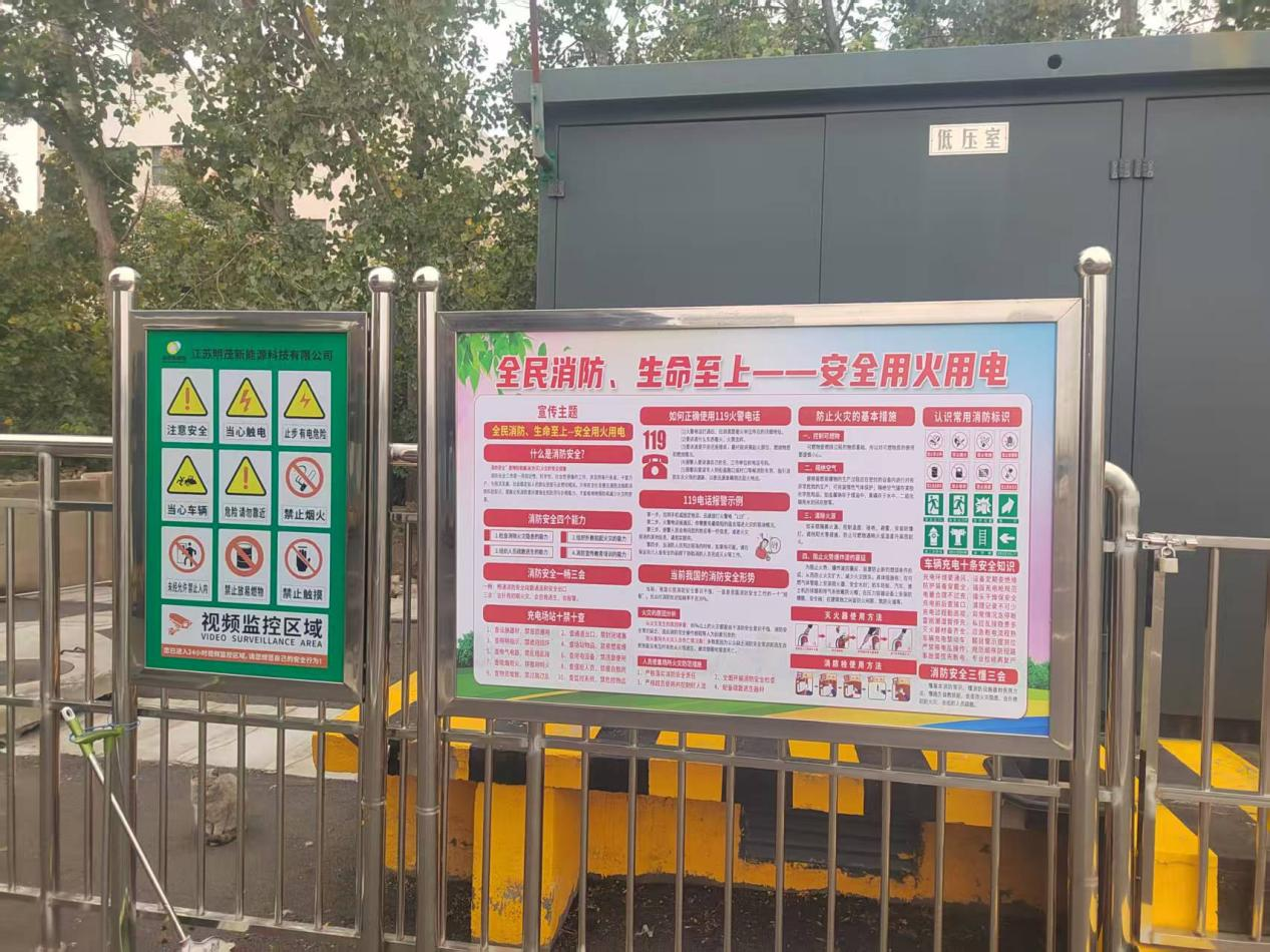 明茂公司在各充電場(chǎng)站的重點(diǎn)區域懸掛消防宣傳月主題橫幅,并利用站內宣傳欄系統展示安全用電十大禁令、充電設備操作規程、滅火器使用要點(diǎn)等實(shí)用知識。展板內容結合新能源行業(yè)特點(diǎn),聚焦充電設備電氣安全、動(dòng)火作業(yè)管理、電動(dòng)自行車(chē)規范停放充電等關(guān)鍵風(fēng)險點(diǎn),以圖文并茂的形式解讀“識風(fēng)險、懂預防”的核心要求,引導員工和用戶(hù)自覺(jué)規范用火用電行為,以“看得見(jiàn)、聽(tīng)得懂、記得住”的方式強化“預防為主、防消結合”的方針。同時(shí),各場(chǎng)站同步推動(dòng)“安全隱患隨手拍”活動(dòng),鼓勵員工主動(dòng)發(fā)現并上報身邊隱患,實(shí)現從“要我安全”到“我要安全”的轉變。
