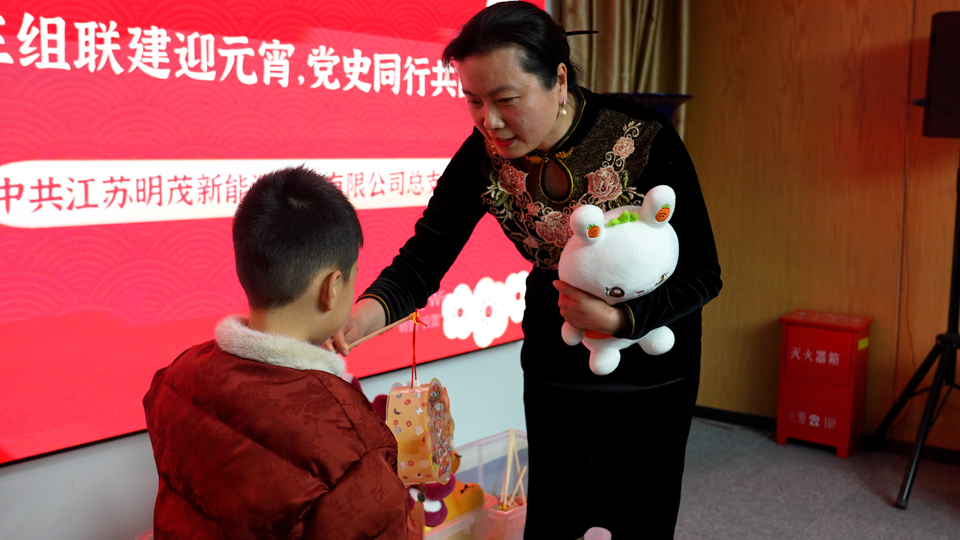 活動(dòng)伊始,明茂公司副總經(jīng)理、工會(huì )主席蔣月琴給現場(chǎng)職工子女贈送元宵節燈籠和玩偶。小朋友們都有說(shuō)有笑,臉上洋溢著(zhù)喜悅的笑容。隨后,由職工及職工子女代表帶著(zhù)大家學(xué)習了元宵節的風(fēng)俗習慣和元宵節黨史小故事。大家在傳統節日文化的多彩底蘊中,共同回顧了中國共產(chǎn)黨的百年光輝歷程,在黨性教育中,汲取了奮進(jìn)力量。