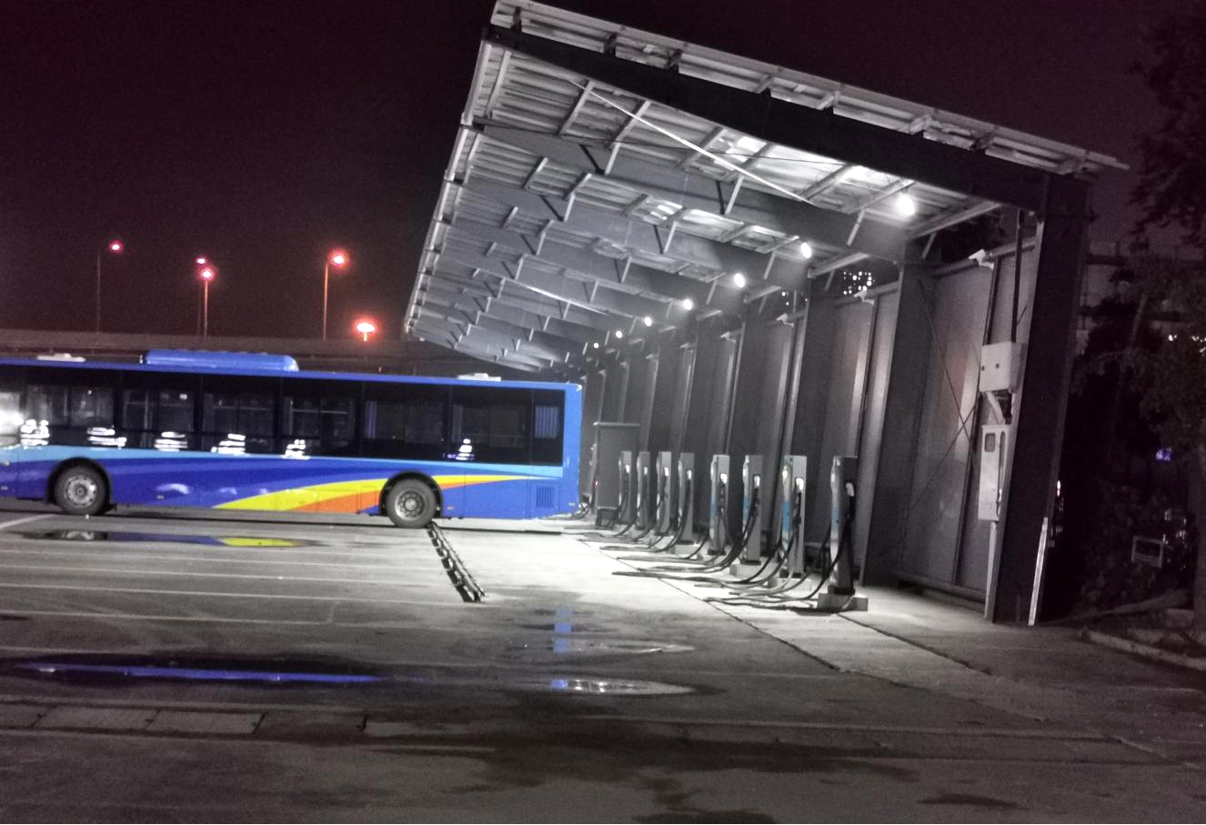 海濱大道新能源汽車(chē)充電站承擔連云區70%的公交車(chē)輛充電任務(wù),屬于大型公交車(chē)輛樞紐站點(diǎn)。自2016年運營(yíng)以來(lái),充電樁設施全部暴露于室外,無(wú)任何遮擋。遇到暴雨、強雷等惡劣天氣,室外作業(yè)存在巨大安全隱患,只能被迫停止公交車(chē)輛充電,造成公交車(chē)輛停運,給市民出行帶來(lái)不便。隨著(zhù)公交集團新能源車(chē)輛運營(yíng)時(shí)限的增長(cháng),特別是夏季高溫無(wú)遮擋,冬季雨雪積壓腐蝕,致使設備故障頻率增加,車(chē)輛充電效率降低,影響公交正常運行。
