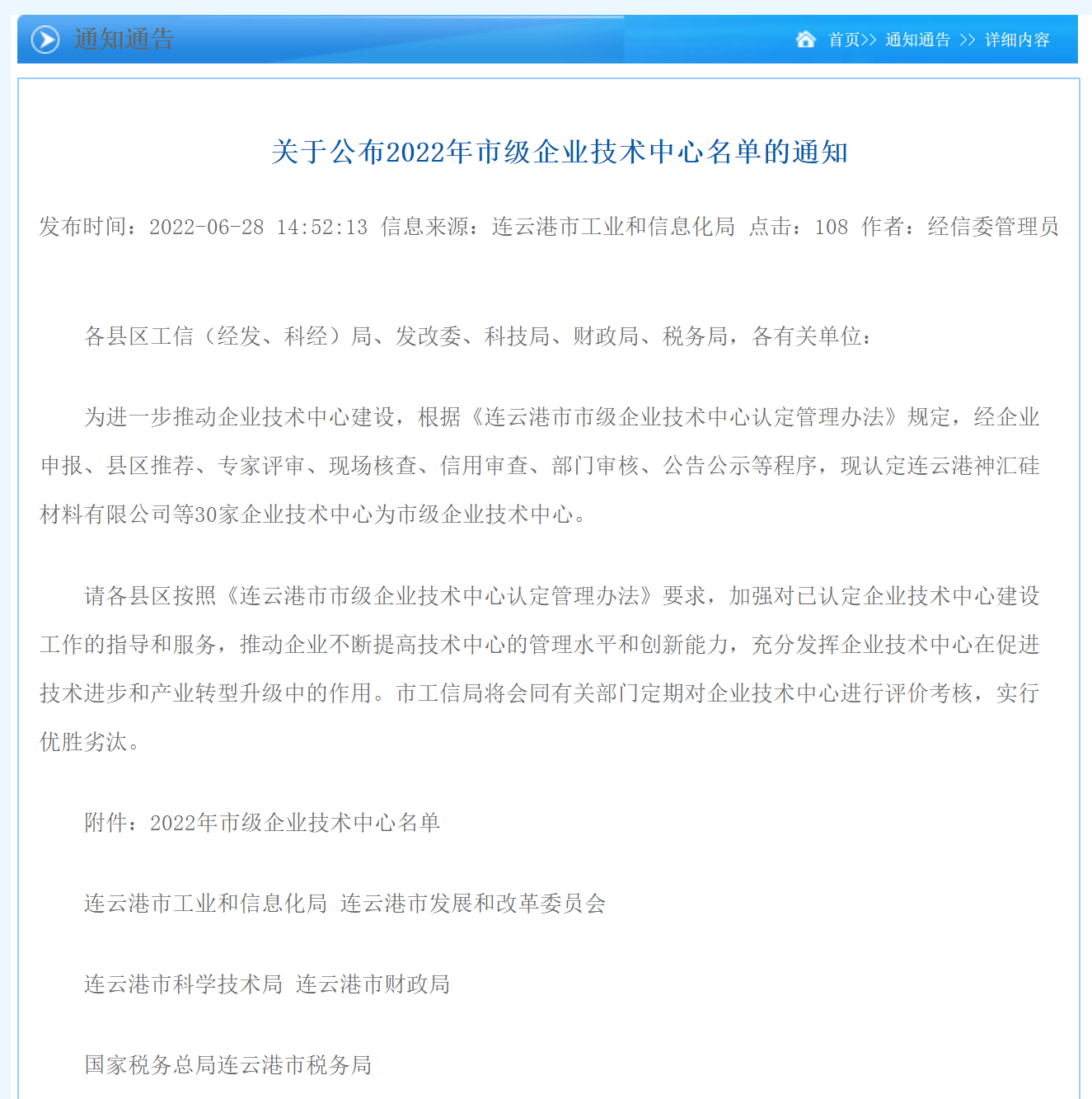 628日,連云港市工業(yè)和信息化局在官方網(wǎng)站發(fā)文,根據《連云港市認定企業(yè)技術(shù)中心管理辦法》,認定明茂公司為2022年連云港市企業(yè)技術(shù)中心。