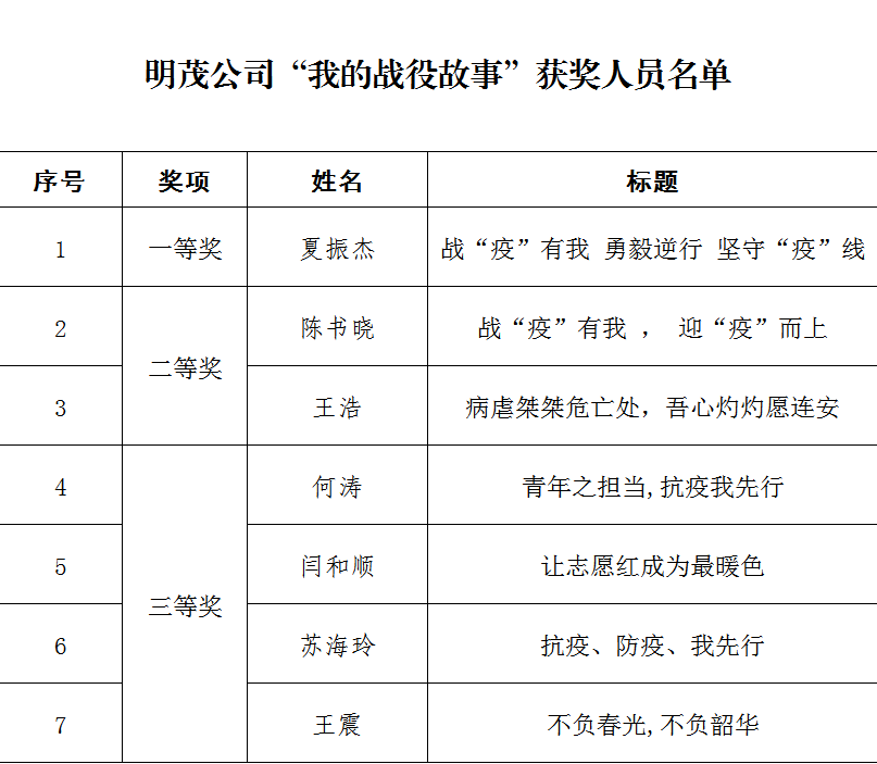 明茂公司“我的戰役故事”征文評選揭曉
