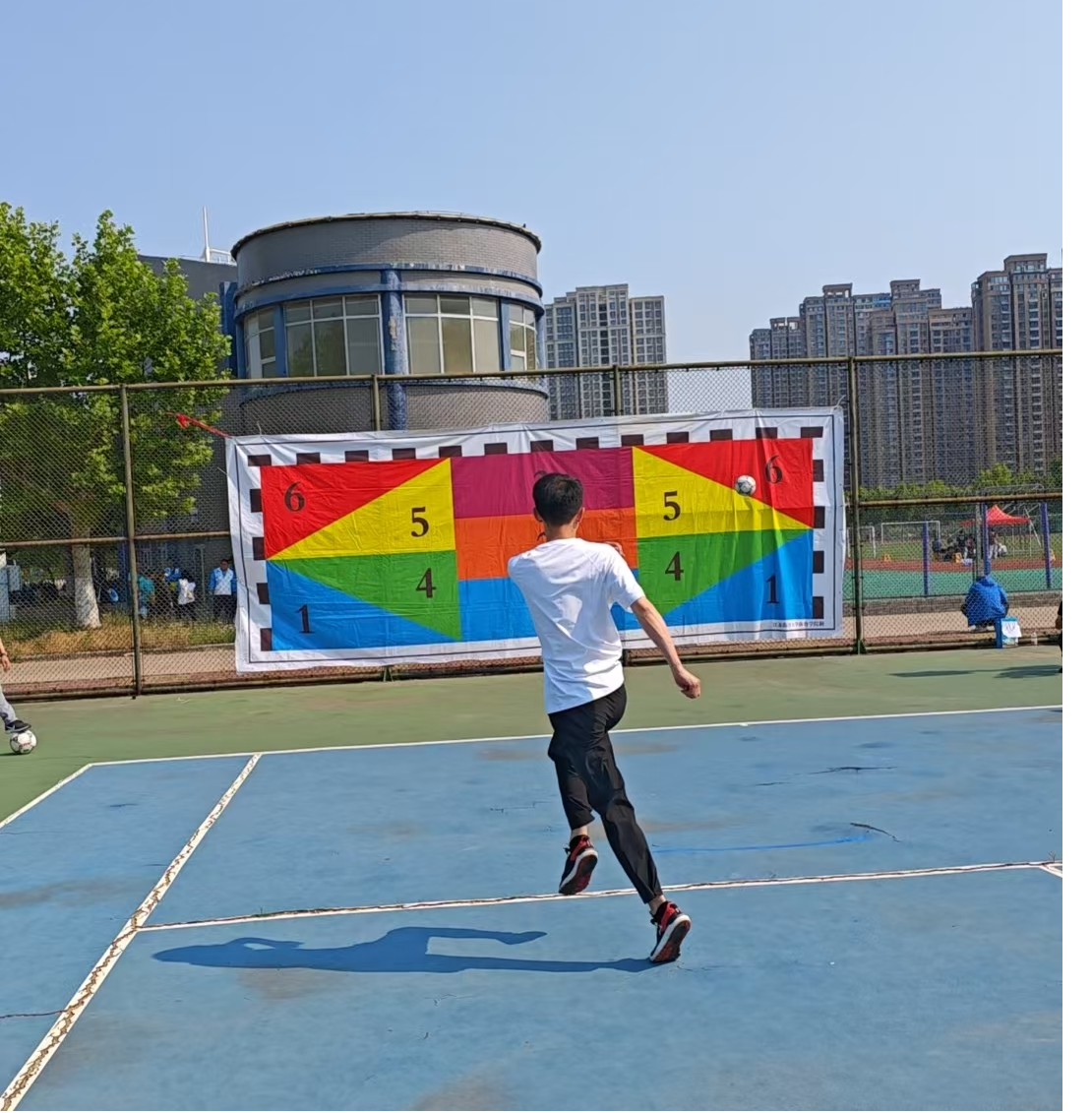 本次比賽采用“定點(diǎn)射門(mén)”賽制,塑膠籃排球場(chǎng)圍網(wǎng)上設足球墻,足球墻上根據進(jìn)球難度設定不同得分,參賽者在距離球門(mén)11 米(罰球點(diǎn))處進(jìn)行足球射門(mén),每人射門(mén)六次,以累計得分定勝負。明茂公司李曉龍展現出超凡的控球能力與精準度。他助跑、調整、起腳一氣呵成,足球如離弦之箭連續打中高分墻,贏(yíng)得全場(chǎng)喝彩。