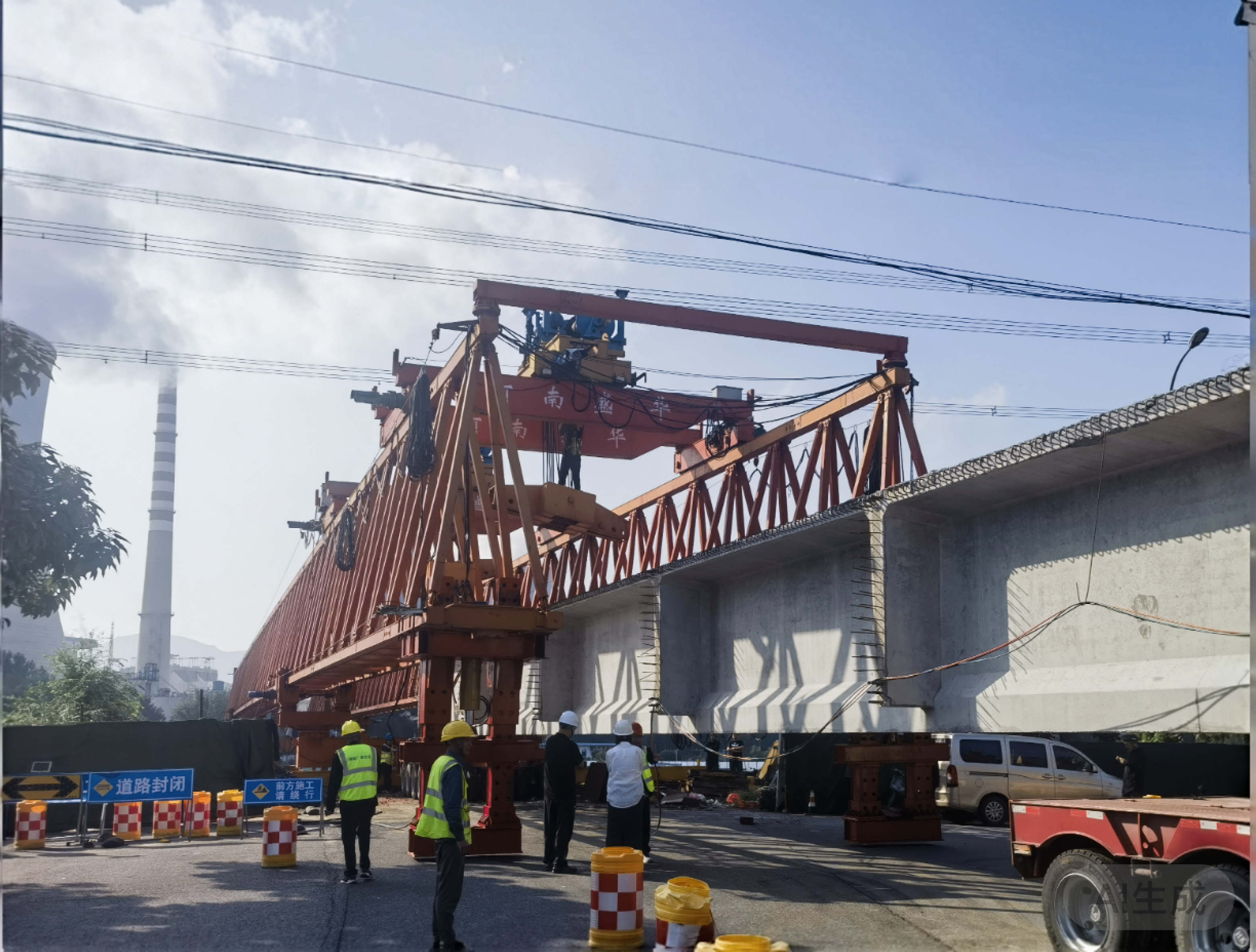 此次成功架設的首片梁為邊梁,位于橋梁最外側,其線(xiàn)型控制和安裝精度直接關(guān)系到后續橋面系的施工質(zhì)量和整體橋型美觀(guān),是全線(xiàn)梁板架設的關(guān)鍵控制點(diǎn)。為確保萬(wàn)無(wú)一失,項目部周密部署,對架橋機進(jìn)行了空載試運行和嚴密檢查,并對現場(chǎng)作業(yè)人員展開(kāi)詳細的技術(shù)交底與安全培訓。在整個(gè)起吊、平移、落梁過(guò)程中,測量人員全程跟蹤監測,操作人員精準微調,最終實(shí)現毫米級的高精度安裝。