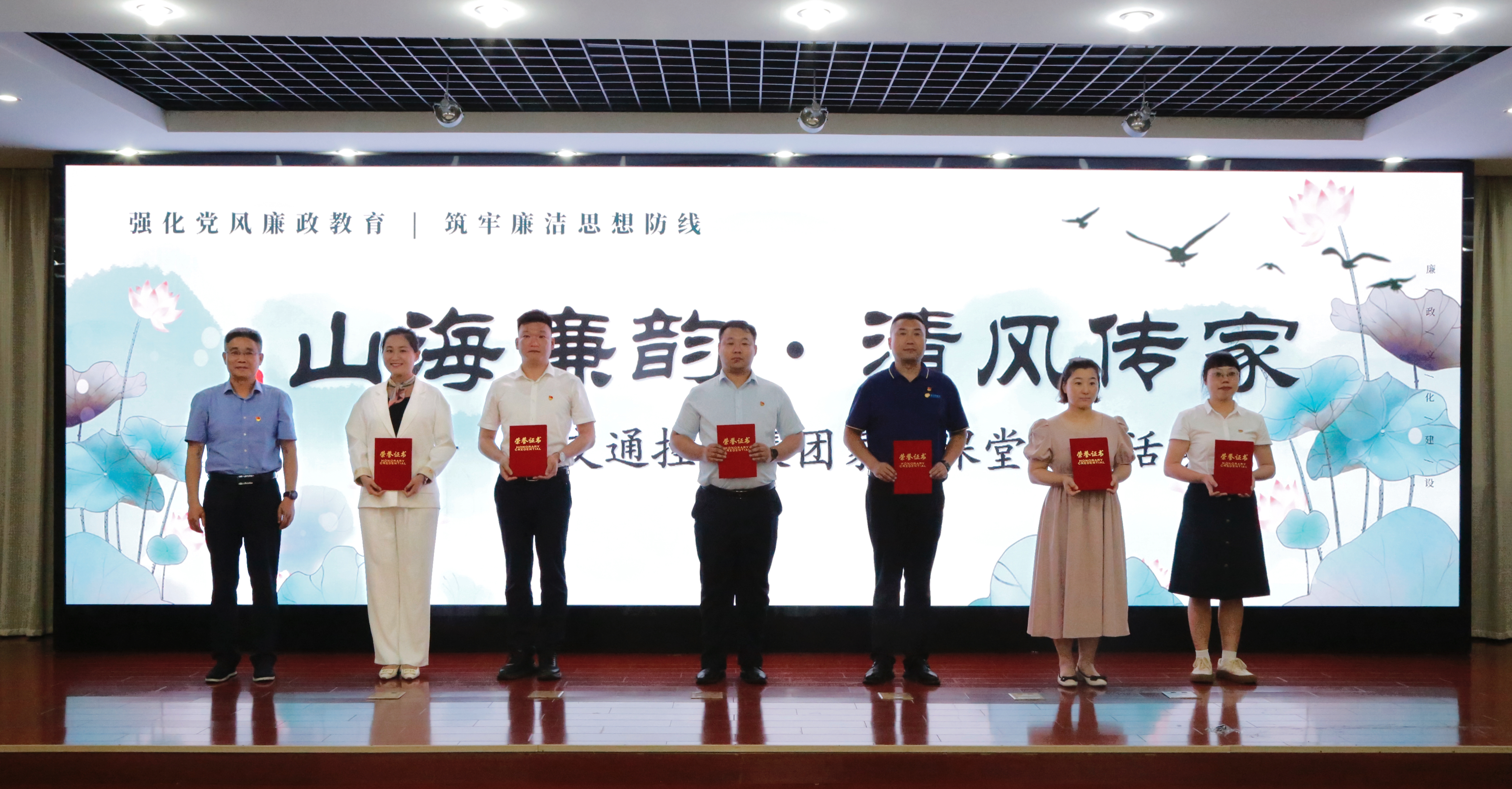 活動(dòng)最后,集團總經(jīng)理、黨委副書(shū)記、副董事長(cháng)孫中華向與會(huì )黨員干部家庭代表贈閱廉潔讀本,集團黨委書(shū)記、董事長(cháng)仲偉濤組向本次專(zhuān)場(chǎng)活動(dòng)分享黨員發(fā)放集團“山海廉韻 清風(fēng)傳家”家風(fēng)課堂優(yōu)秀分享人證書(shū)。