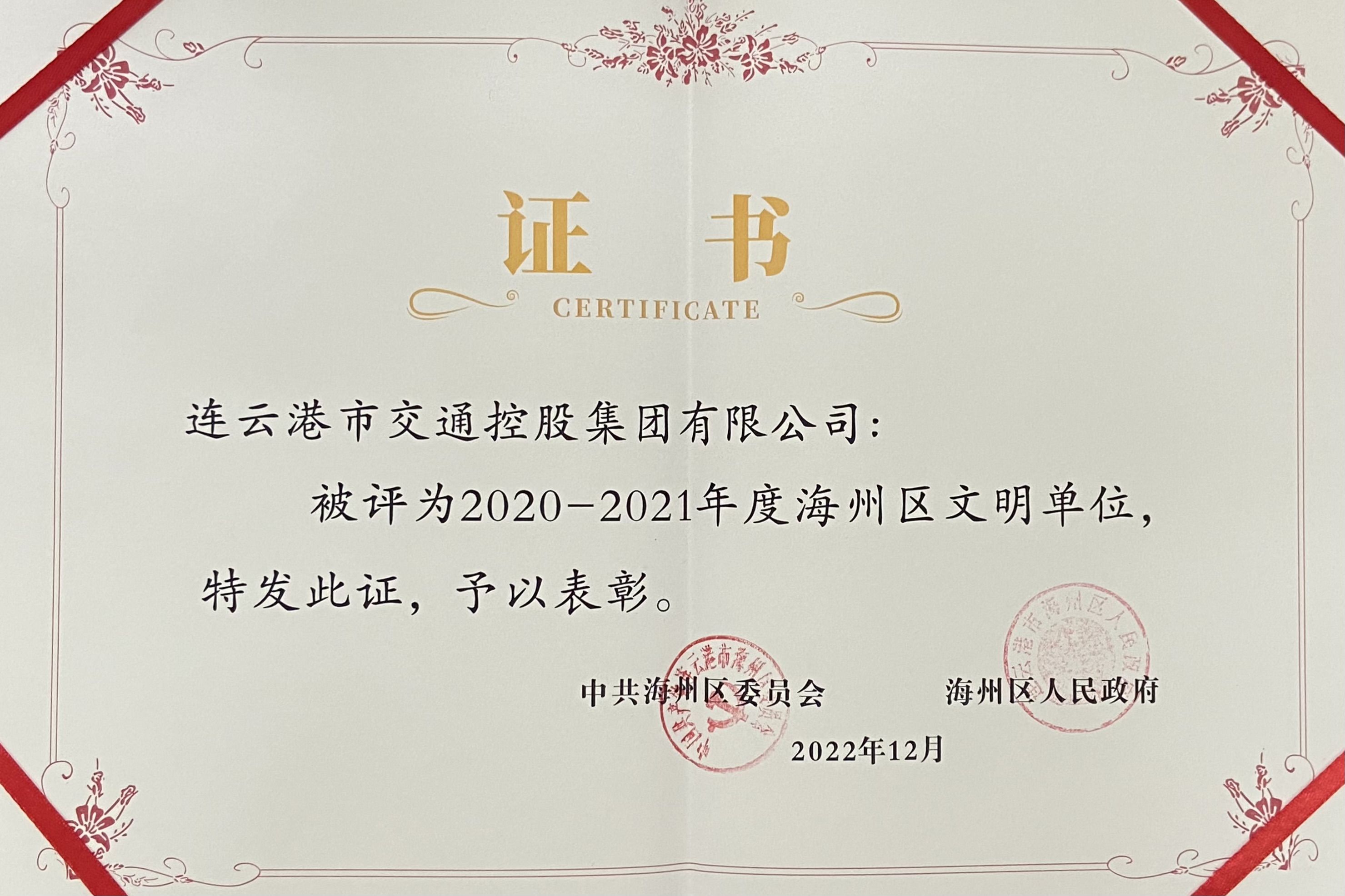 日前,中共海州區委、海州區人民政府授予以下集團及權屬單位2020-2021年度海州區文明單位榮譽(yù)稱(chēng)號: