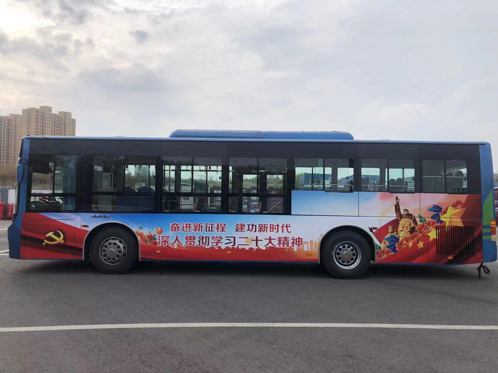 車(chē)身外觀(guān),更新為以紅、藍色為主基調,車(chē)身噴繪上“深入貫徹學(xué)習二十大精神”“奮進(jìn)新征程 建功新時(shí)代”等醒目的標語(yǔ),通過(guò)車(chē)輛每日運行的方式穿梭于城市的大街小巷,增強社會(huì )宣傳受眾面,讓黨的理論“坐”上公交,走向社會(huì )。