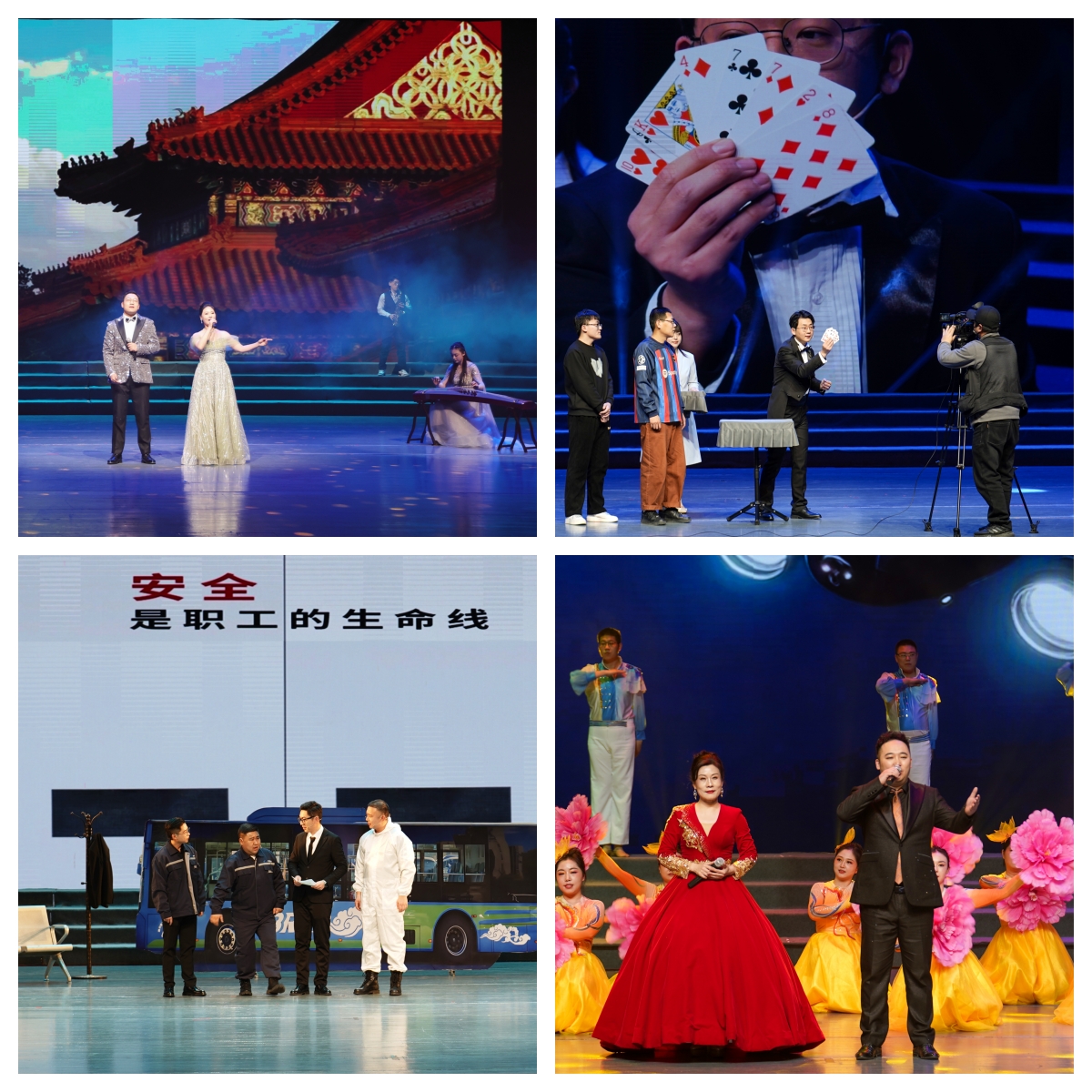 整場(chǎng)職工文藝匯演分《奮勇向前煥新篇》《盛世逢春開(kāi)新局》《靈蛇啟智闖新路》和《自信昂揚新征程》四個(gè)篇章,通過(guò)歌舞、音樂(lè )情景劇、相聲、小品、魔術(shù)、歌曲串燒、情景朗誦等多種表現形式,精彩呈現了交通控股人攜手走過(guò)的奮斗路,展示了廣大職工拼搏進(jìn)取、昂揚向上的精氣神。