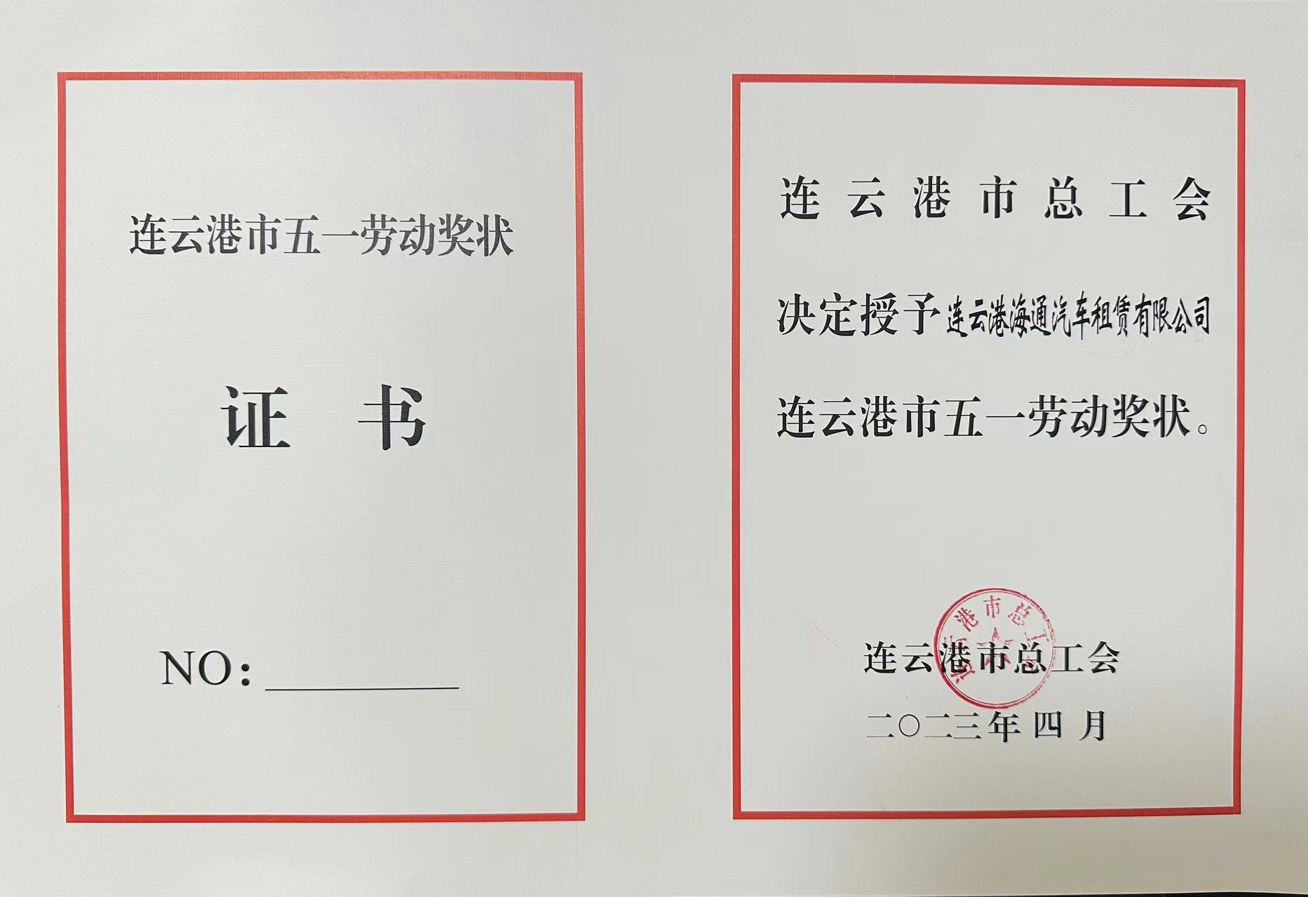 日前,從連云港市總工會(huì )傳來(lái)喜訊,連云港海通汽車(chē)租賃有限公司榮獲“連云港市五一勞動(dòng)獎狀”榮譽(yù)稱(chēng)號。