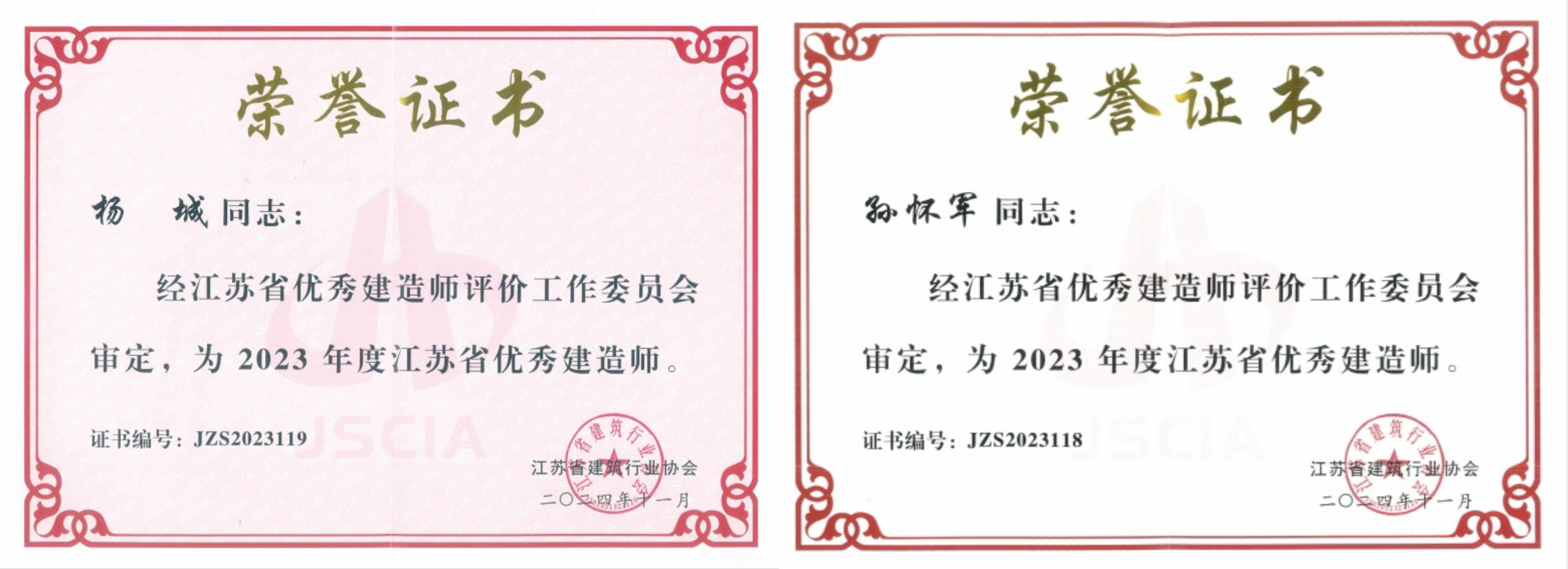 江蘇海建公司兩人榮獲2023年度“江蘇省優(yōu)秀建造師”稱(chēng)號