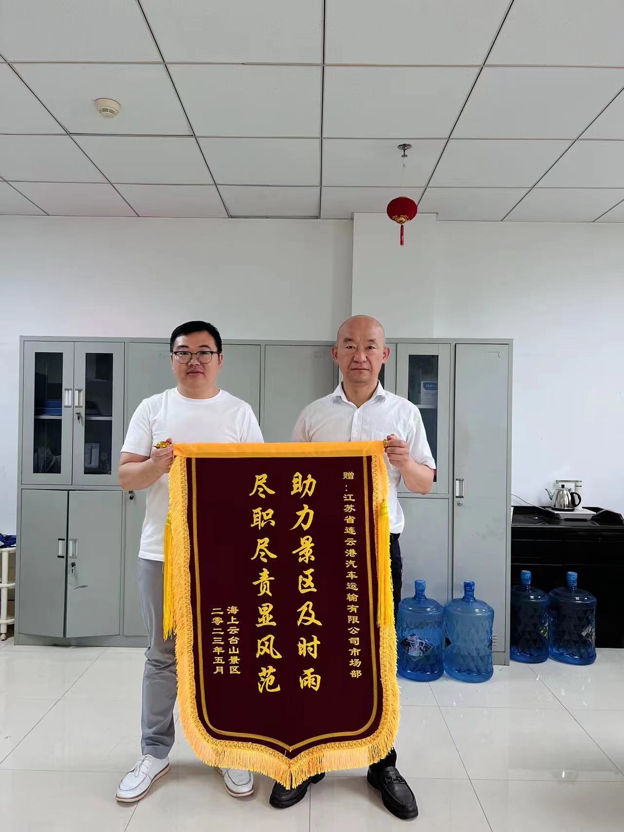 近日,海上云臺山景區工作人員來(lái)到汽車(chē)公司,送上了一面“助力景區及時(shí)雨 盡職盡責顯風(fēng)范”的錦旗,向在“五一”假期為景區游客群眾貼心服務(wù)、保駕護航的汽車(chē)公司駕駛員表示衷心感謝。