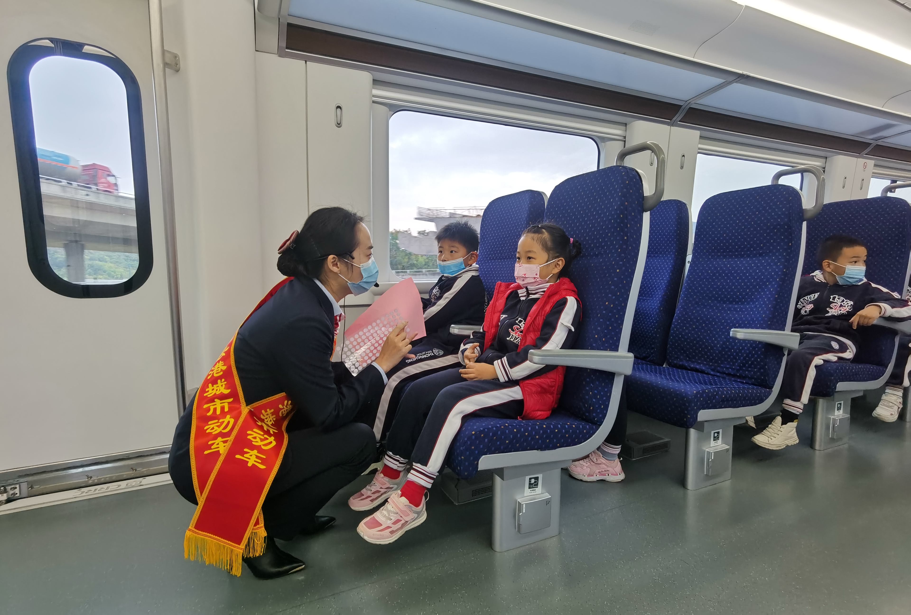 在列車(chē)行駛途中,城市動(dòng)車(chē)工作人員給小朋友們詳細講解了車(chē)站車(chē)貌的概況、乘車(chē)的禁帶品以及動(dòng)車(chē)上不能吸煙的原因等。在講解到乘坐火車(chē)禁帶品時(shí),小朋友們很感興趣,紛紛踴躍發(fā)言,有疑惑的積極詢(xún)問(wèn),城市動(dòng)車(chē)工作人員一一作了解答?;顒?dòng)結束后,幼兒園園長(cháng)表示:這次活動(dòng)非常有意義,不僅讓小朋友們體驗了舒適的城市動(dòng)車(chē),也讓他們對城市動(dòng)車(chē)有一定的了解,并向他們普及了關(guān)于乘坐火車(chē)時(shí)不能帶違禁品的相關(guān)知識。