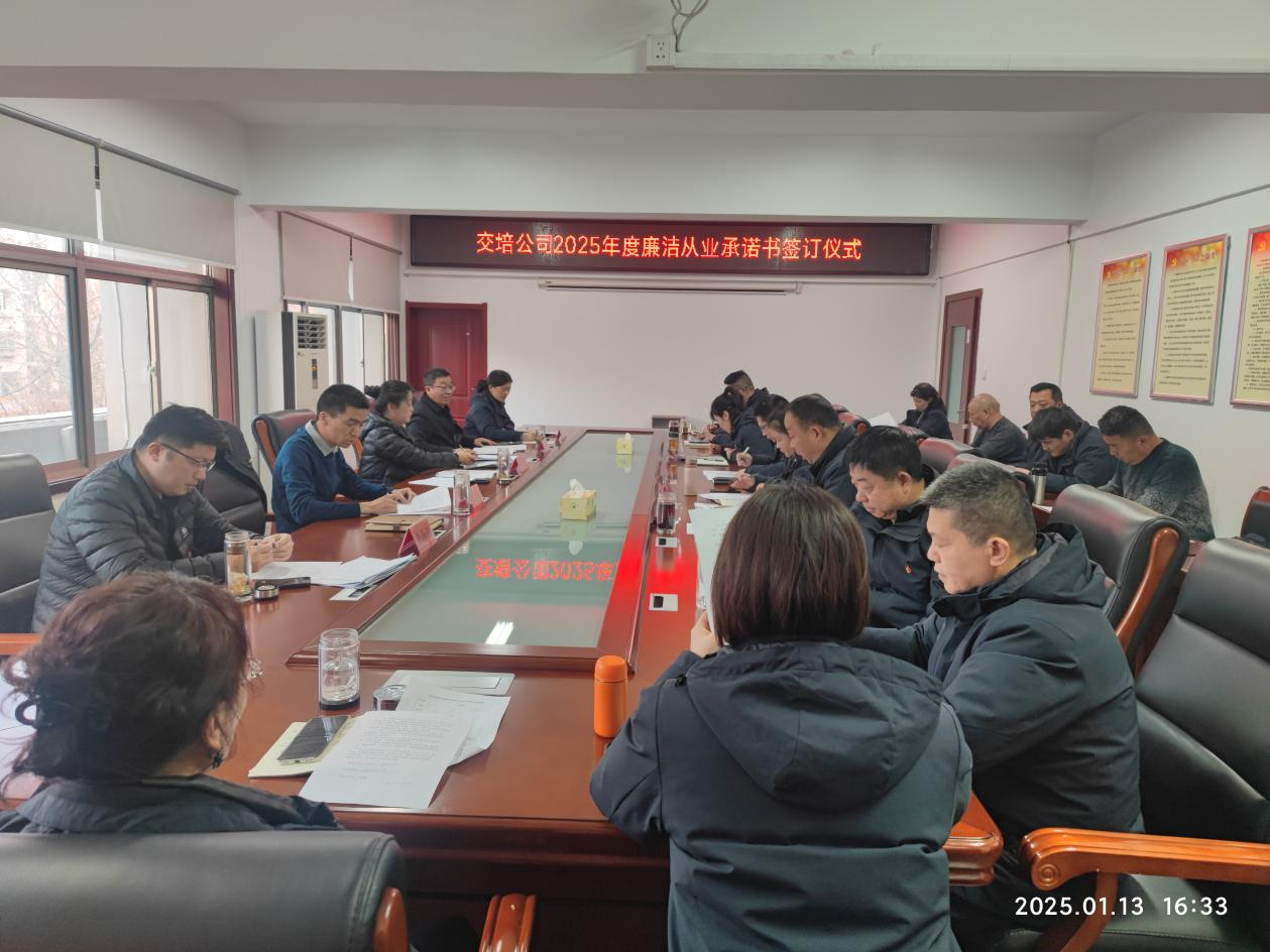 1月13日,交培公司紀委組織領(lǐng)導班子成員、中層干部及關(guān)鍵崗位人員等100余人簽訂了《廉潔從業(yè)承諾書(shū)》,進(jìn)一步筑牢廉潔從業(yè)“防火墻”。