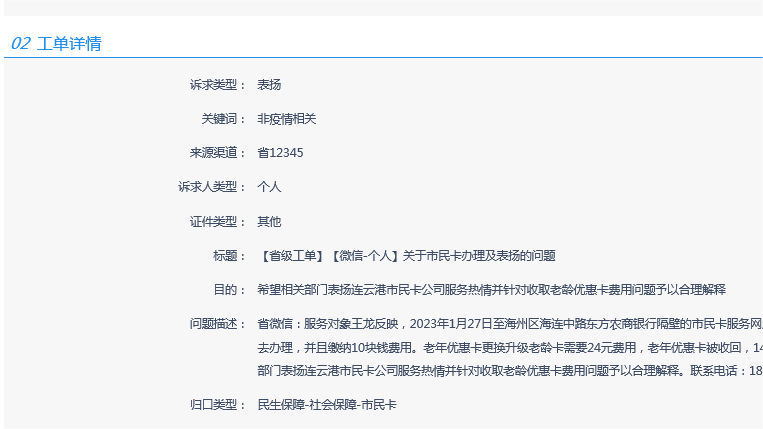 1月28日下午,12345熱線(xiàn)服務(wù)平臺簽收了一封來(lái)自王先生對市民卡公司客服人員薛熒的表?yè)P信。