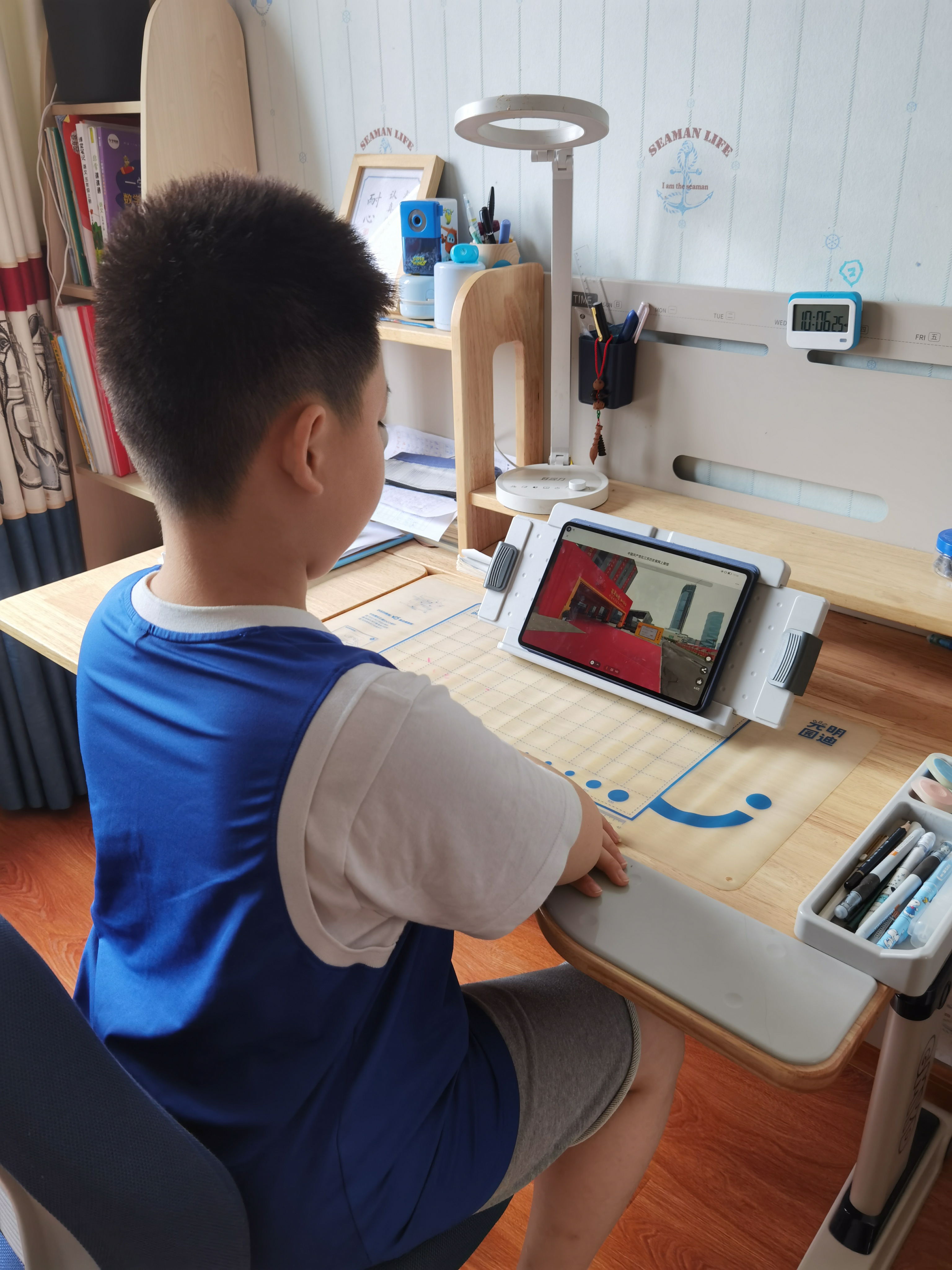 黨員王思也在用自己的方式積極引導孩子學(xué)黨史,聽(tīng)黨話(huà)。她在觀(guān)看“百年征程 初心永恒——中國共產(chǎn)黨在江蘇歷史展”網(wǎng)上展館時(shí),吸引了孩子的注意??闯龊⒆訉@種新型的VR體驗很是好奇,就指導孩子利用平板電腦自行觀(guān)看,身臨其境的感受,瞬間加深了孩子對革命歷史的認知。
