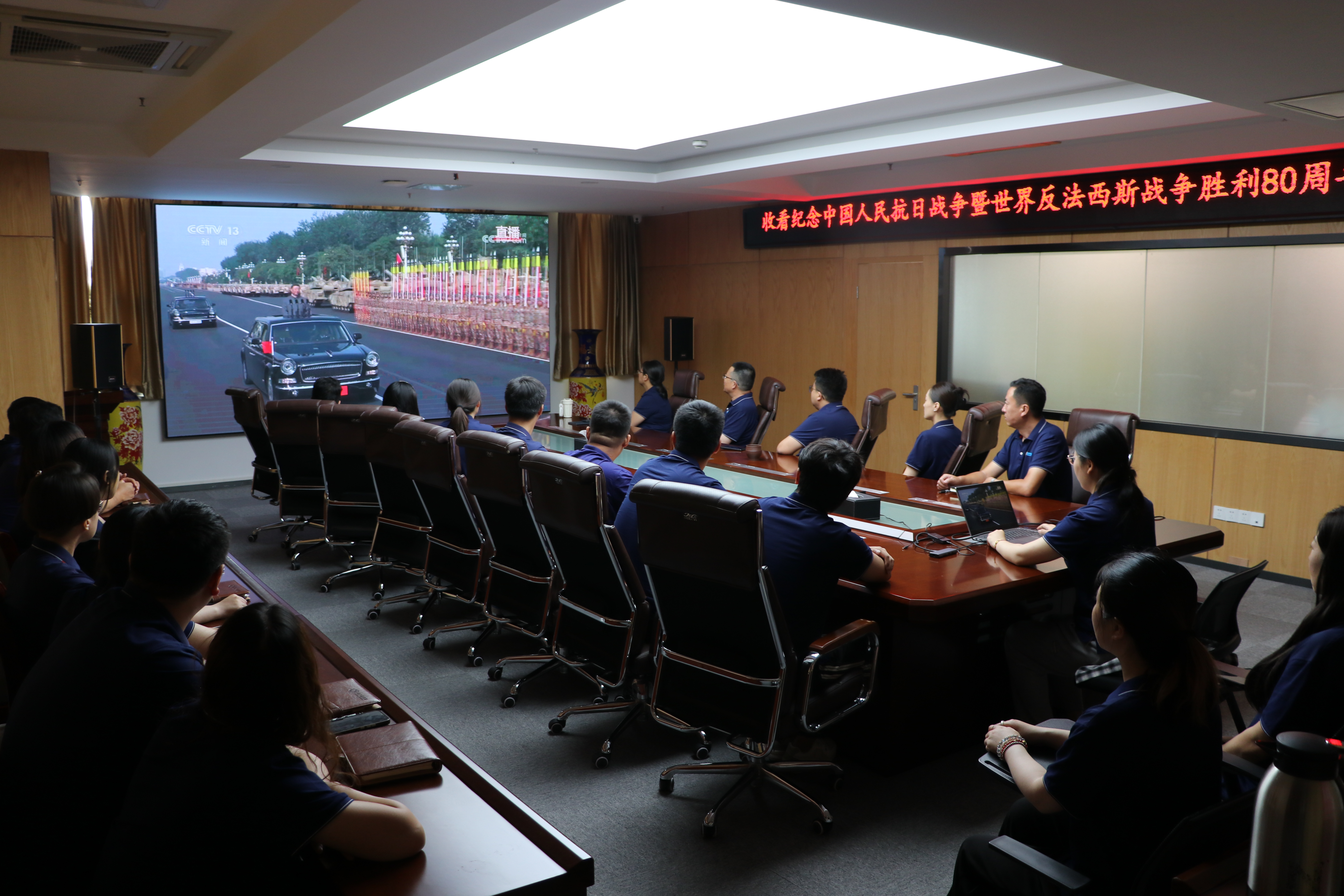 會(huì )議室內,員工齊聚一堂,全程觀(guān)看了紀念大會(huì )直播。當中共中央總書(shū)記、國家主席、中央軍委主席習近平發(fā)表重要講話(huà)時(shí),會(huì )場(chǎng)一片肅穆,大家全神貫注聆聽(tīng)。習近平主席強調:“中華民族偉大復興勢不可擋!人類(lèi)和平與發(fā)展的崇高事業(yè)必將勝利!”這一莊嚴的歷史時(shí)刻,讓每位員工都感受到民族復興的偉大歷程與艱難曲折。