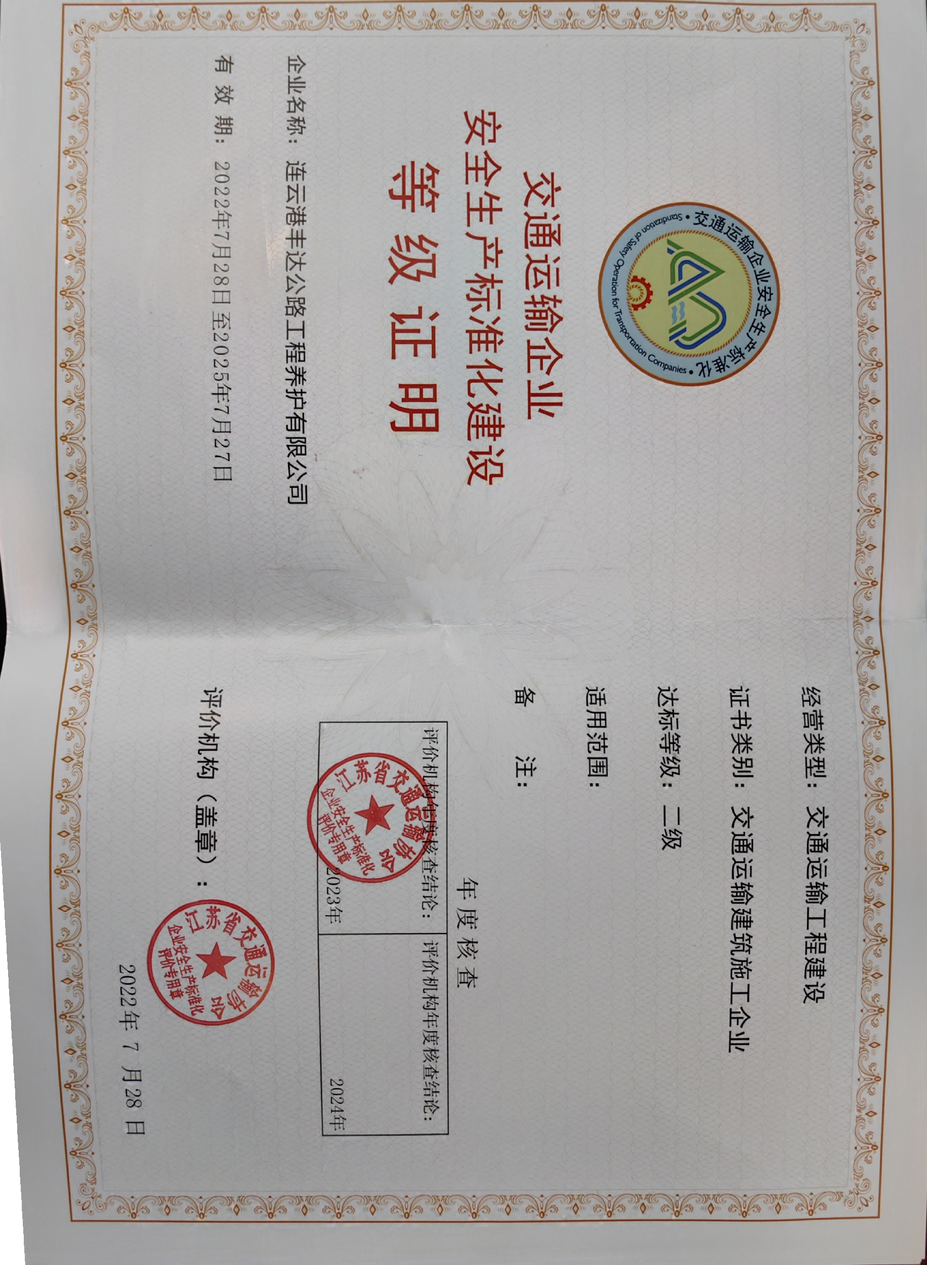 豐達公司順利完成交通運輸二級安全生產(chǎn)標準化企業(yè)年度復審工作