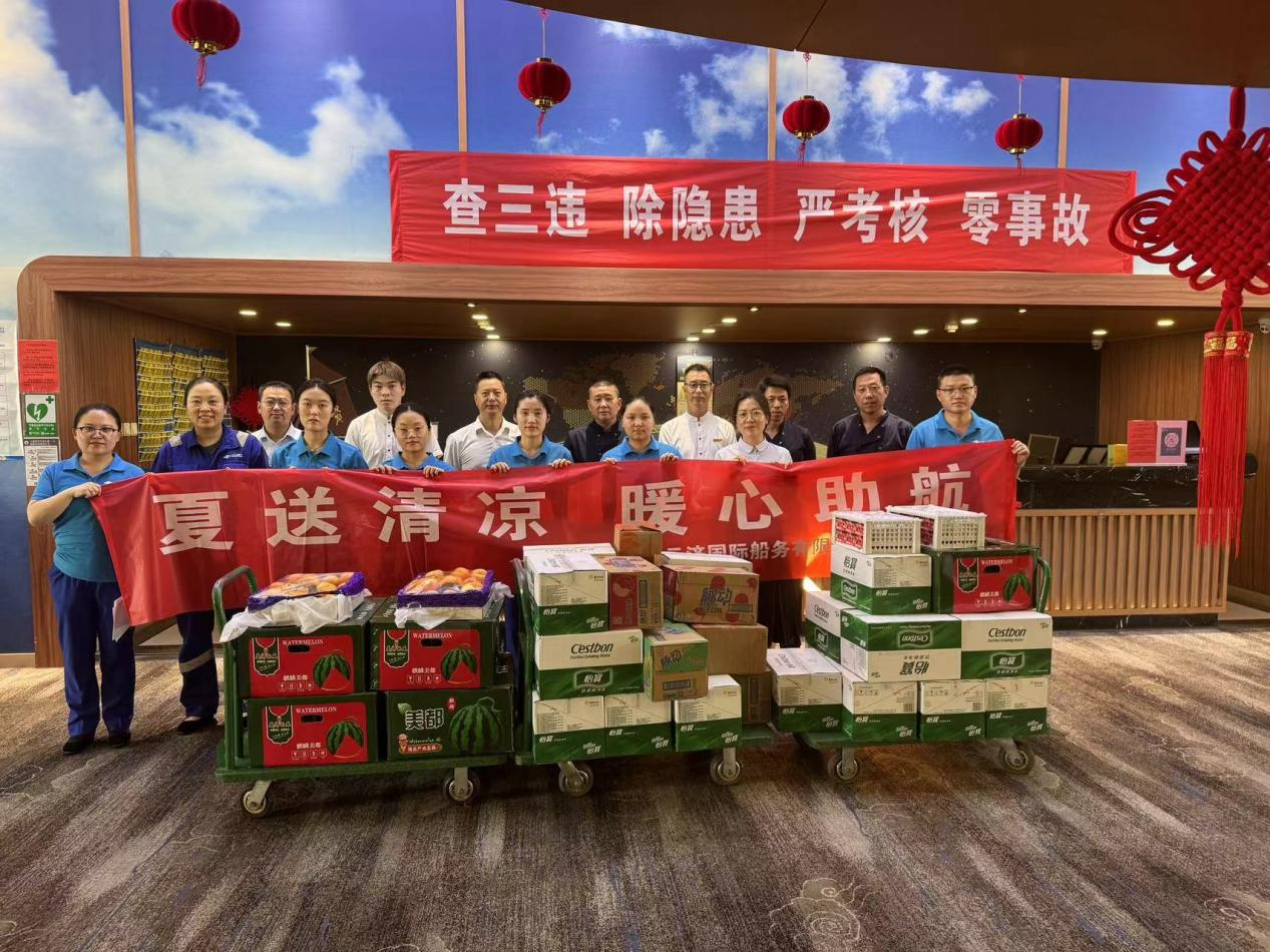 7月24日,云濟船務(wù)公司開(kāi)展“夏送清涼,暖心助航”夏日送清涼慰問(wèn)活動(dòng),將關(guān)懷與清涼精準送達“和諧云港”輪全體在崗乘務(wù)員身邊。