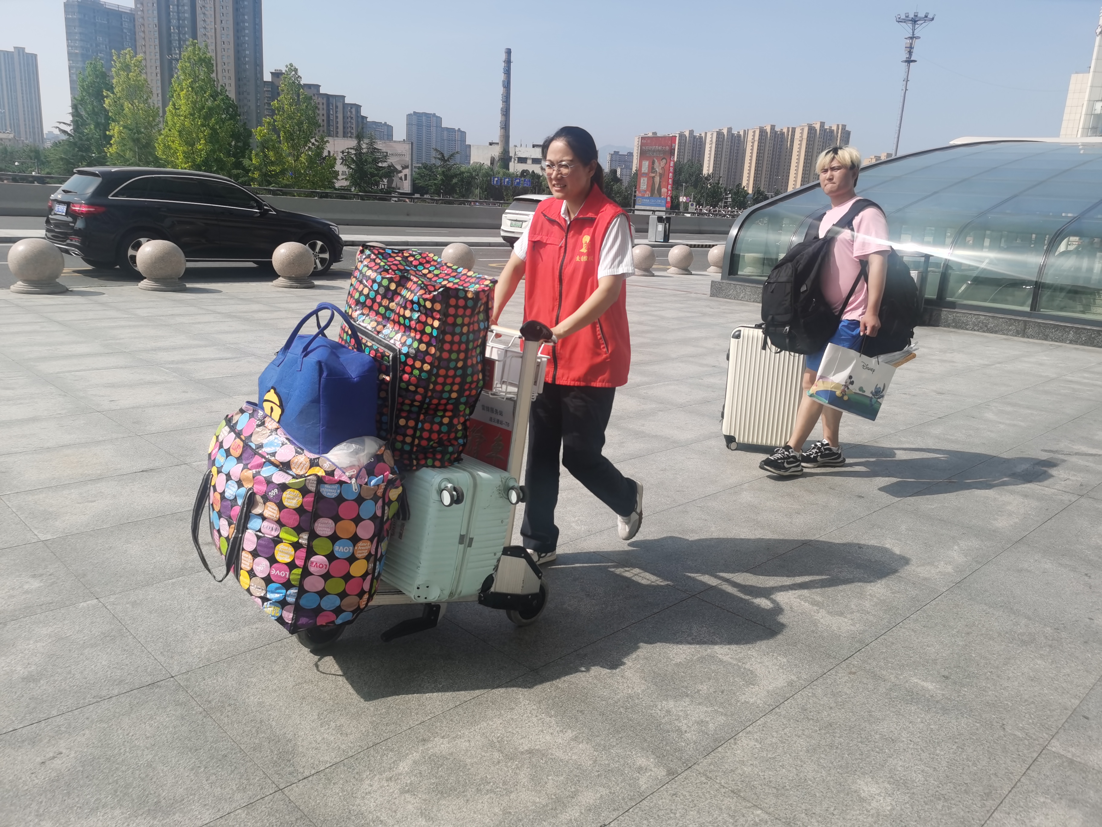 盡管烈日高懸,暑氣灼人,二人顧不上炎熱,立刻幫旅客清點(diǎn)、搬運行李。因旅客特殊情況,交流全靠手勢與文字,她們耐心比劃、書(shū)寫(xiě),確認旅客要前往公交站換乘。過(guò)程中,汗水不斷從額頭滑落,浸濕衣衫,卻絲毫未影響她們幫扶的專(zhuān)注與細致。一路護送旅客到公交站臺,安置好行李,又仔細向公交司機說(shuō)明旅客情況,確保其能順利乘車(chē)返鄉。旅客雖無(wú)法言語(yǔ)表達,卻用反復豎起的大拇指,傳遞深深的感激。