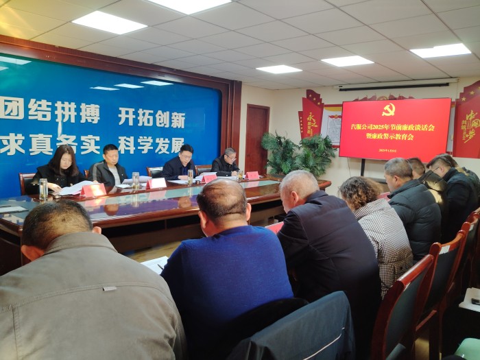 1月9日下午,汽服公司召開(kāi)節前廉政談話(huà)會(huì )暨廉政警示教育會(huì ),公司黨委書(shū)記、總經(jīng)理鞠仕亮等黨委班子成員、各部門(mén)主要負責人、各黨支部書(shū)記及黨員代表共30余人參加會(huì )議。會(huì )議由公司黨委副書(shū)記、常務(wù)副總經(jīng)理蔣健主持。