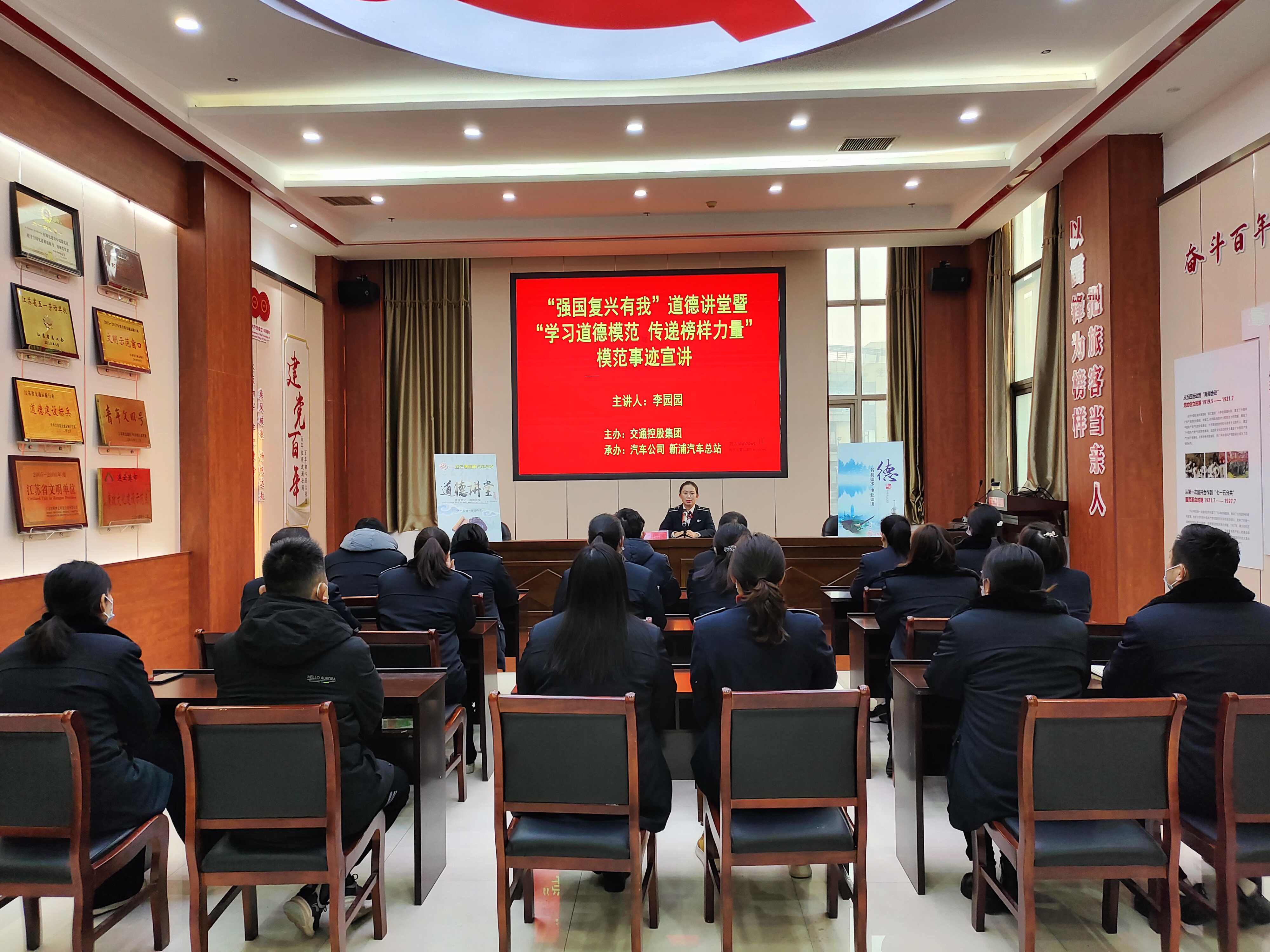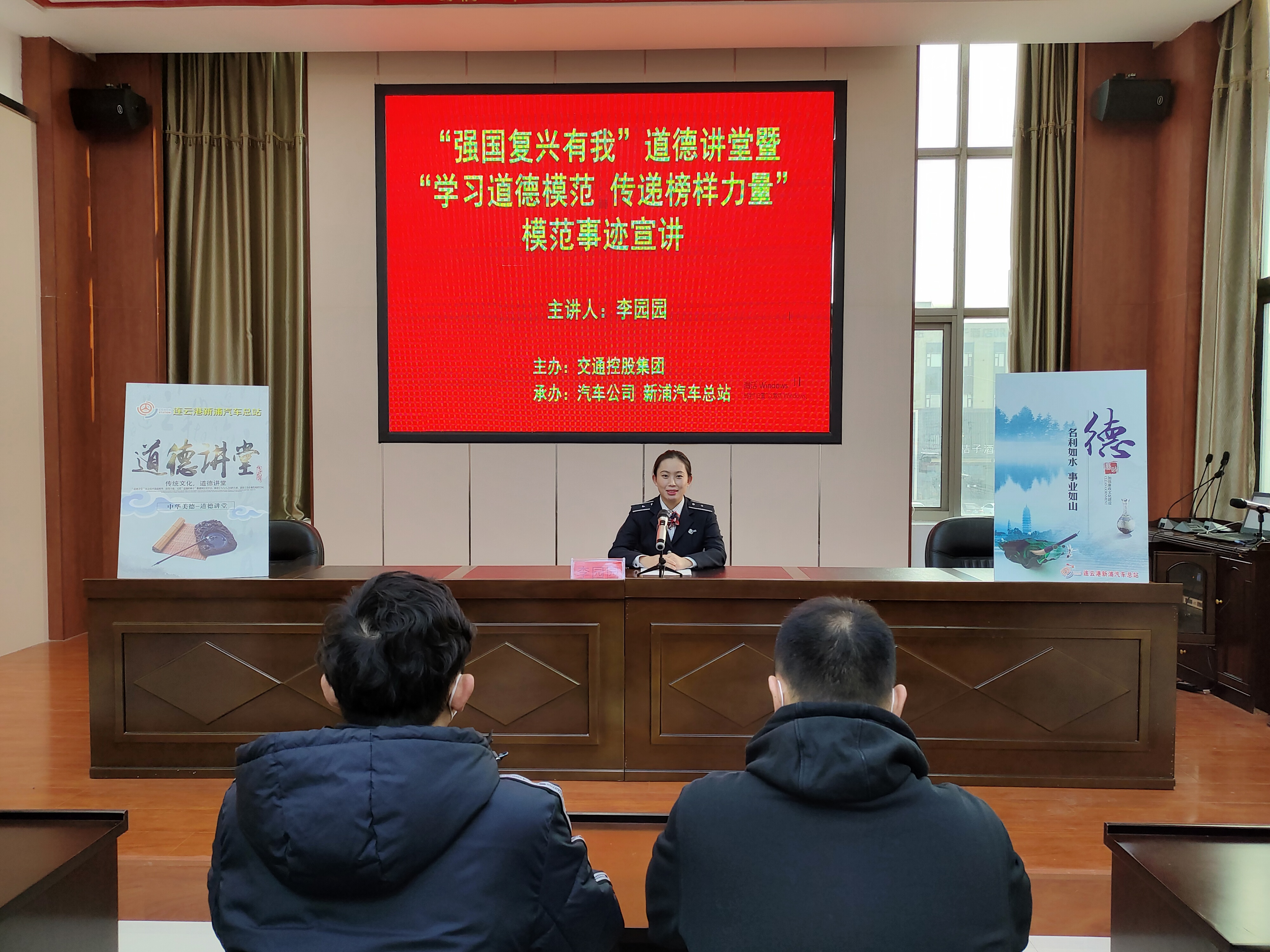 為認真落實(shí)“強國復興有我”道德講堂暨“學(xué)習道德模范 傳遞榜樣力量”主題宣傳教育活動(dòng),12月7日下午,由交通控股集團主辦,汽車(chē)公司、新浦汽車(chē)總站承辦的道德模范進(jìn)講堂活動(dòng)在新浦汽車(chē)總站二樓黨員會(huì )議室開(kāi)講?;顒?dòng)邀請市五一勞動(dòng)獎?wù)芦@得者、第六代“雷鋒車(chē)”手李園園宣講,公司領(lǐng)導班子及干部職工代表30余人參加活動(dòng)。